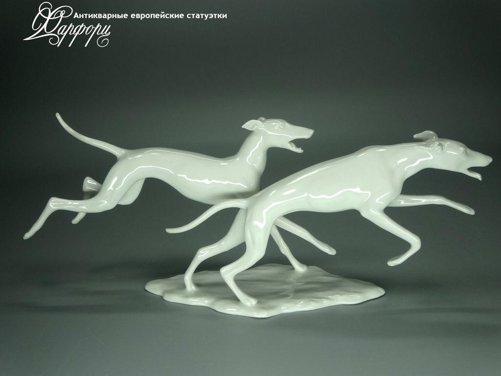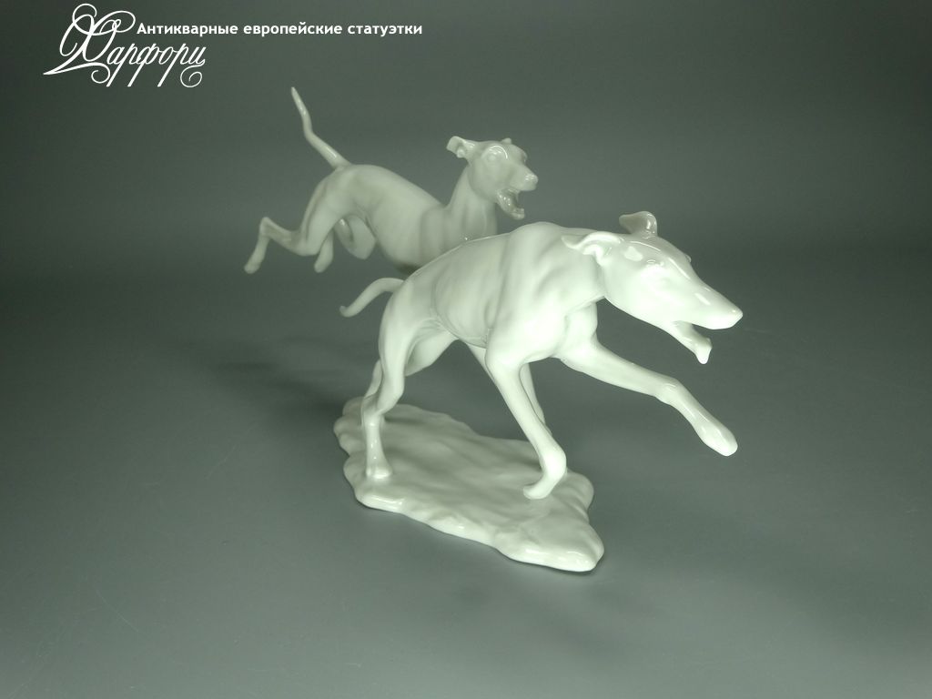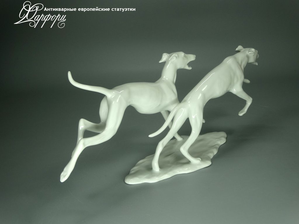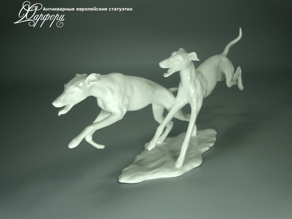 Фарфоровая статуэтка Alka Kunst Пара уиппетов Оригинальная фарфоровая статуэтка мануфактуры Alka Kunst (ГЕРМАНИЯ, 1955-60г).