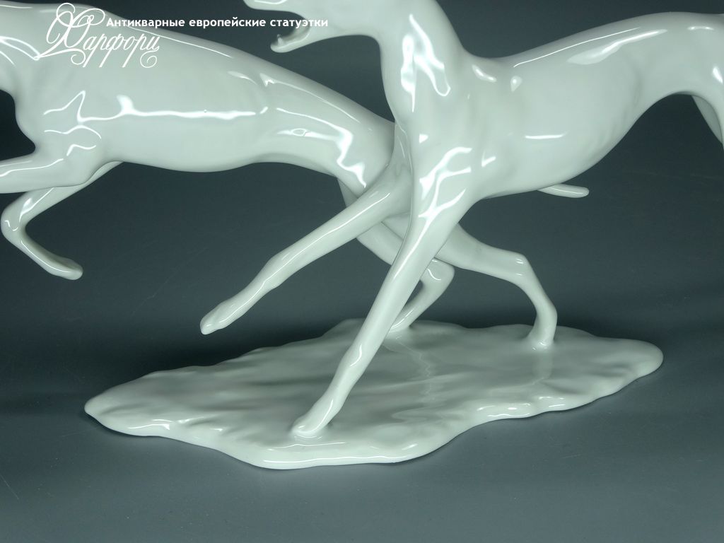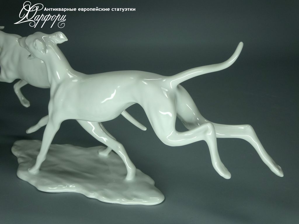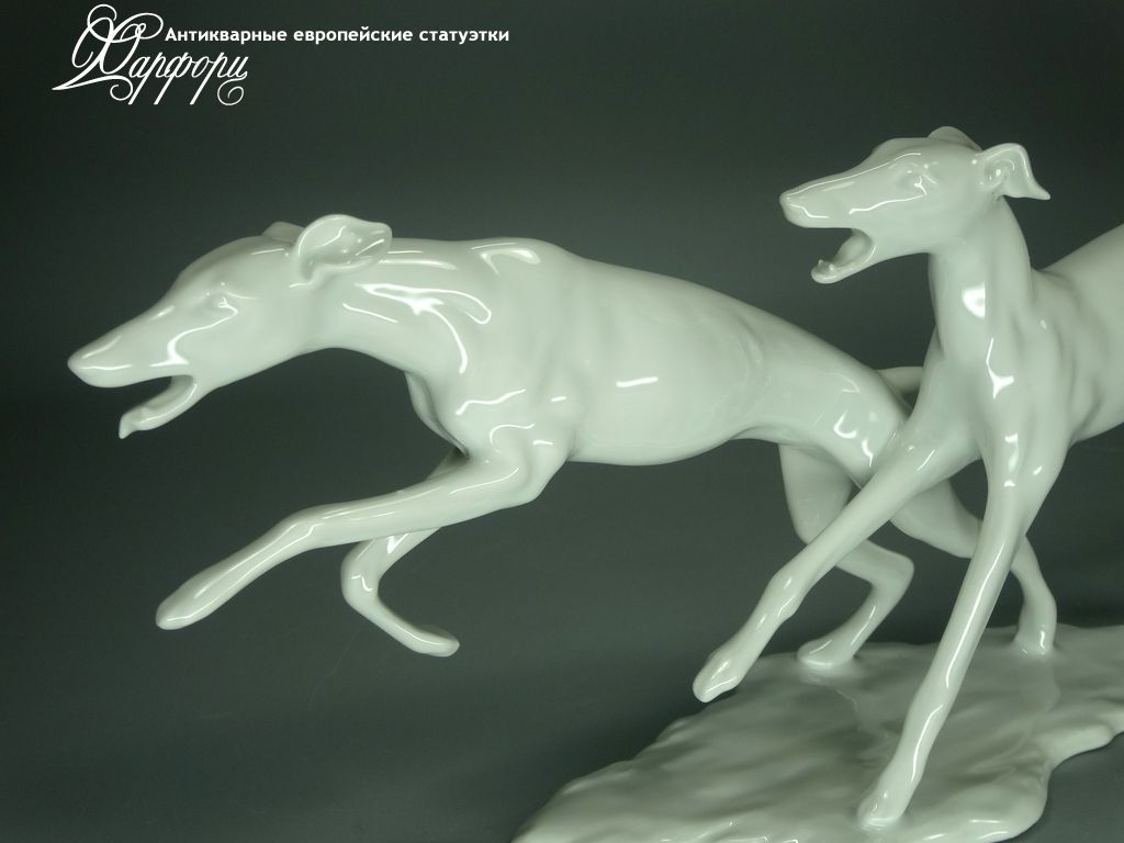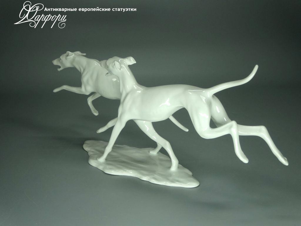 Фарфоровая статуэтка Alka Kunst Пара уиппетов Оригинальная фарфоровая статуэтка мануфактуры Alka Kunst (ГЕРМАНИЯ, 1955-60г).