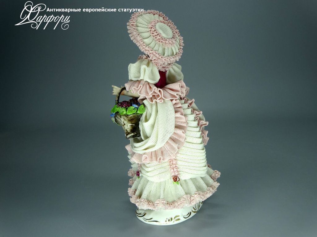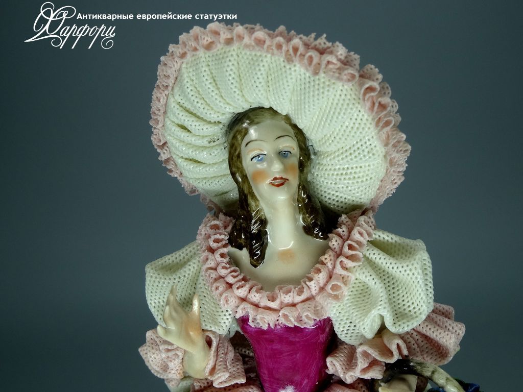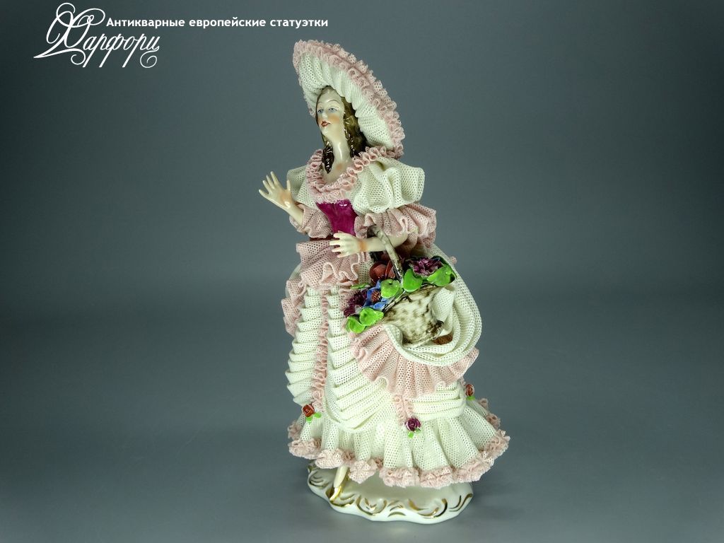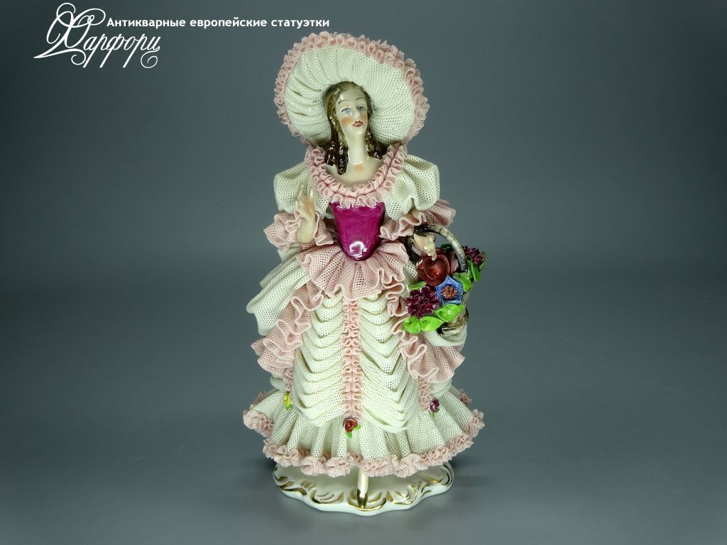 Фарфоровая статуэтка Dresden Девушка с шляпкой Оригинальная фарфоровая статуэтка мануфактуры Dresden (ГЕРМАНИЯ, 1960-75г).