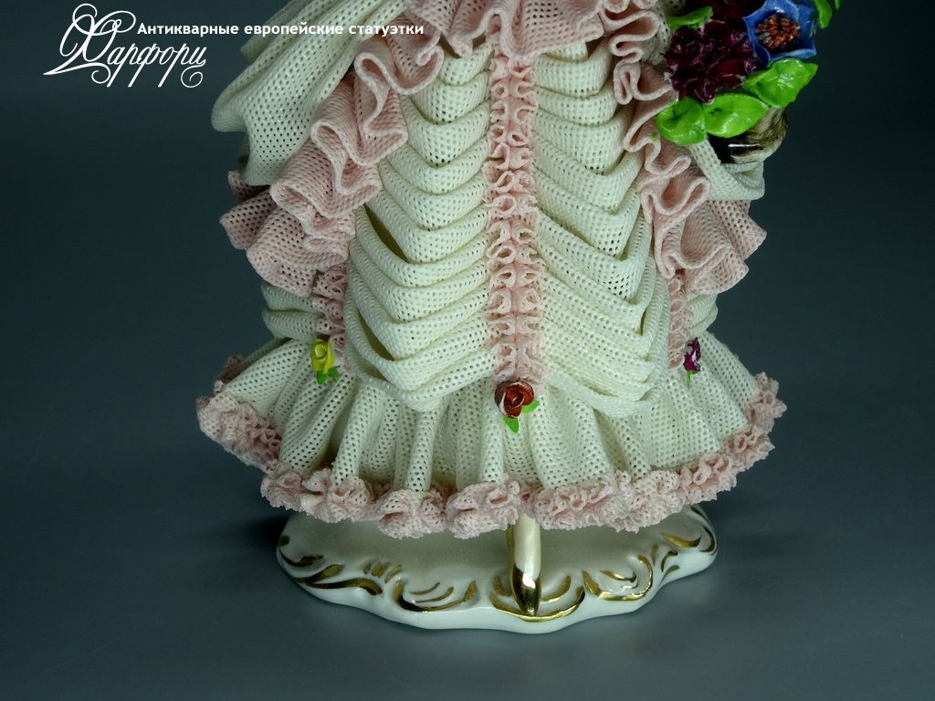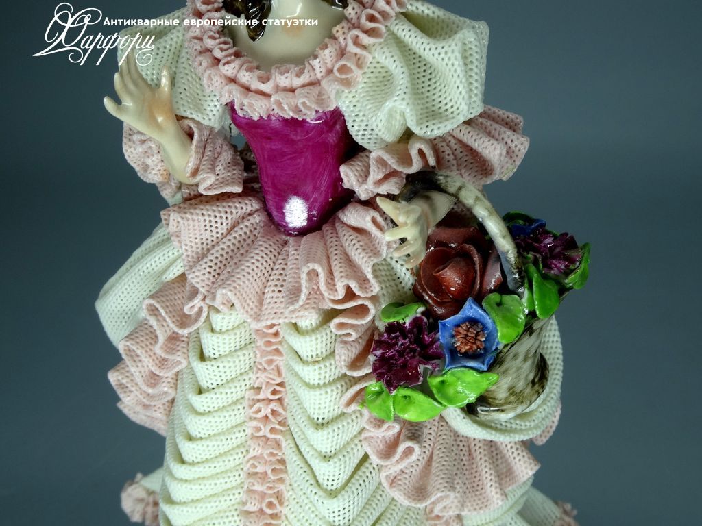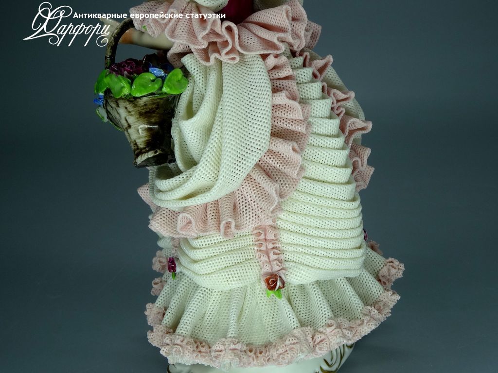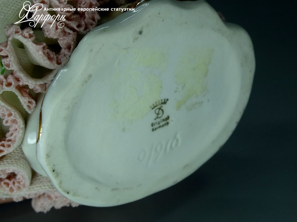 Фарфоровая статуэтка Dresden Девушка с шляпкой Оригинальная фарфоровая статуэтка мануфактуры Dresden (ГЕРМАНИЯ, 1960-75г).