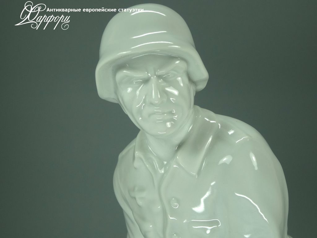 Фарфоровая статуэтка KARL ENS Немецкий солдат с гранатой Оригинальная фарфоровая статуэтка мануфактуры KARL ENS (ГЕРМАНИЯ, 1930-40г).