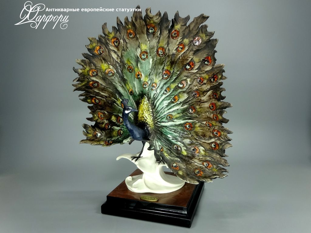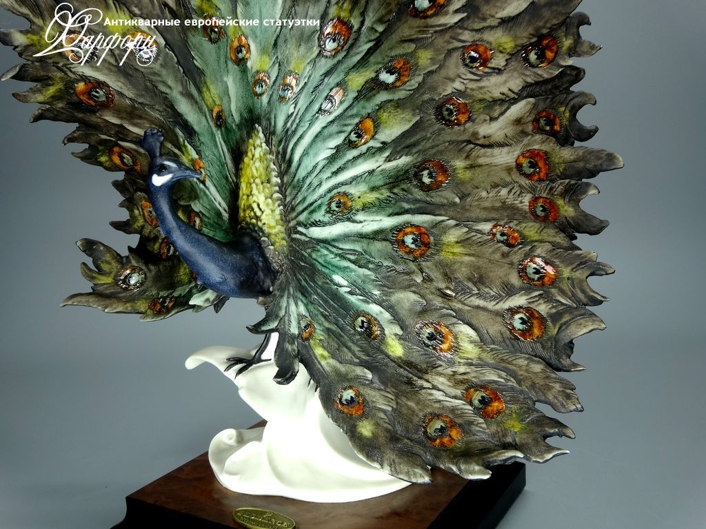 Фарфоровая статуэтка G. Armani Павлин Оригинальная фарфоровая статуэтка (бисквит) мануфактуры G. Armani (ИТАЛИЯ, 1985-90г).