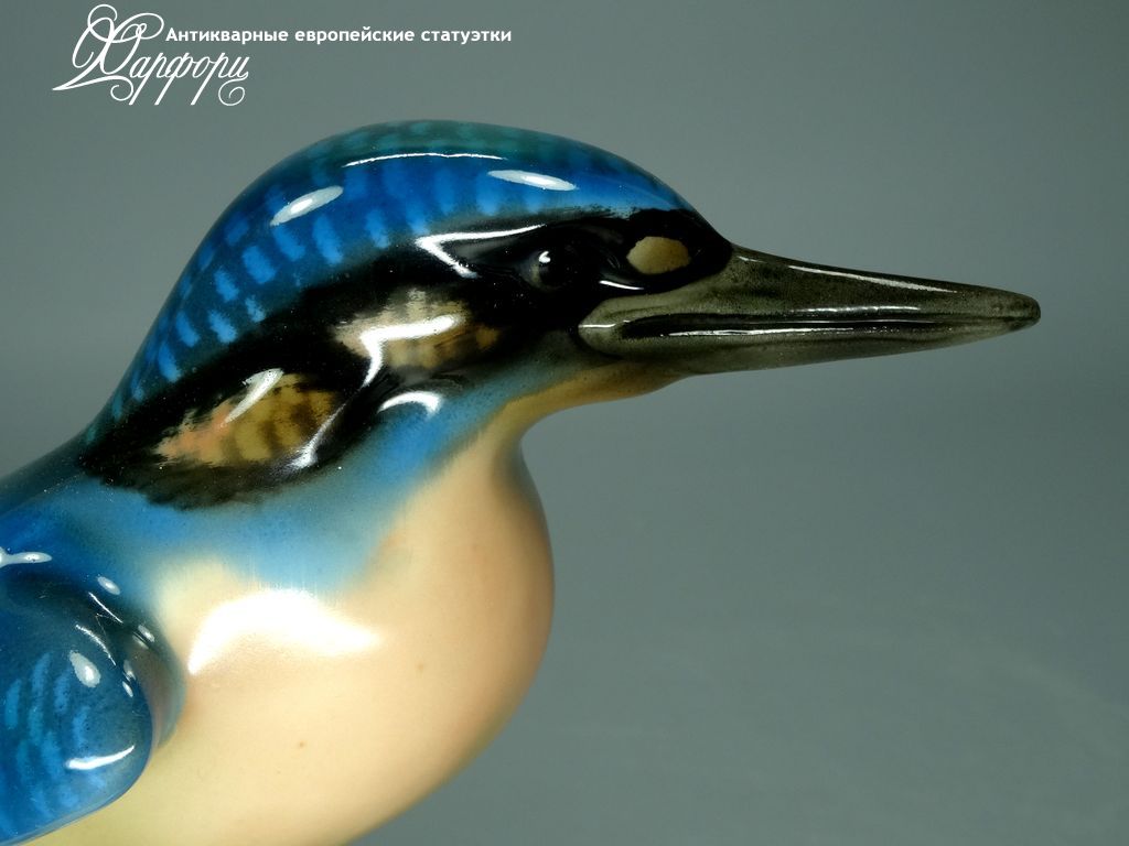 Фарфоровая статуэтка Heubach Зимородок Оригинальная фарфоровая статуэтка мануфактуры Heubach (ГЕРМАНИЯ, 1920-40г).