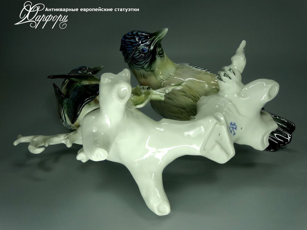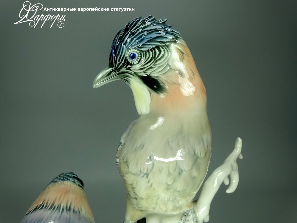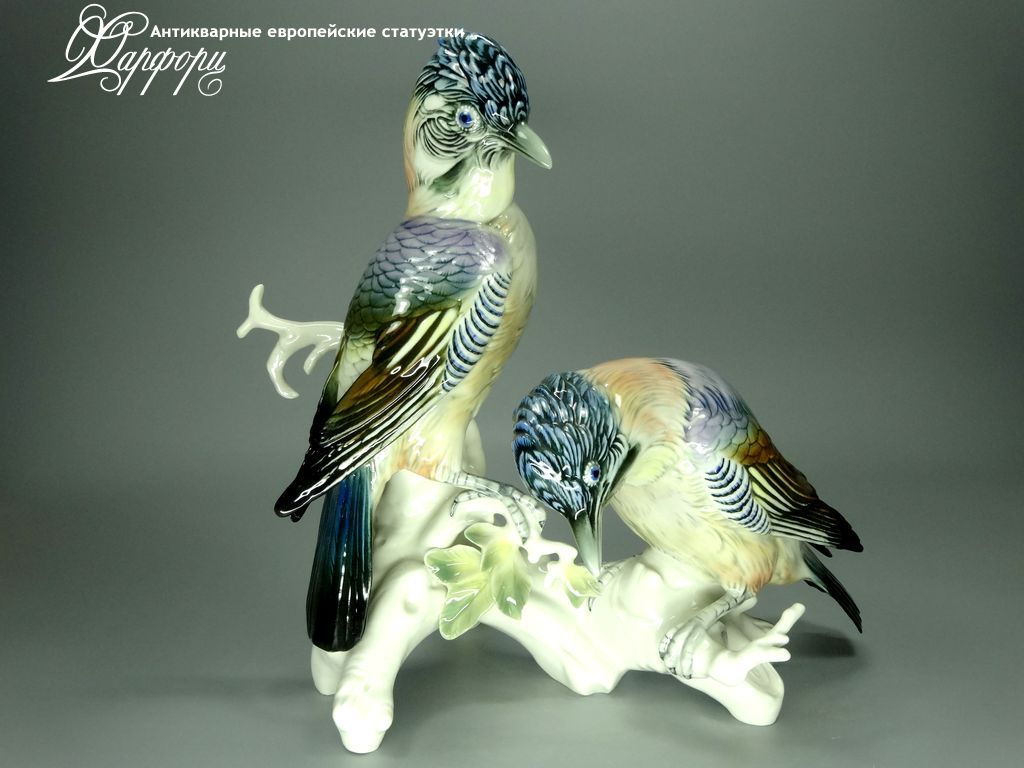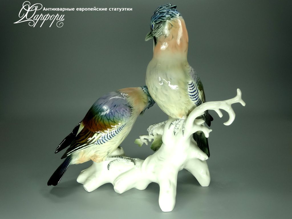 Фарфоровая статуэтка KARL ENS Пара больших соек Оригинальная фарфоровая статуэтка мануфактуры KARL ENS (ГЕРМАНИЯ, 1940-44г).