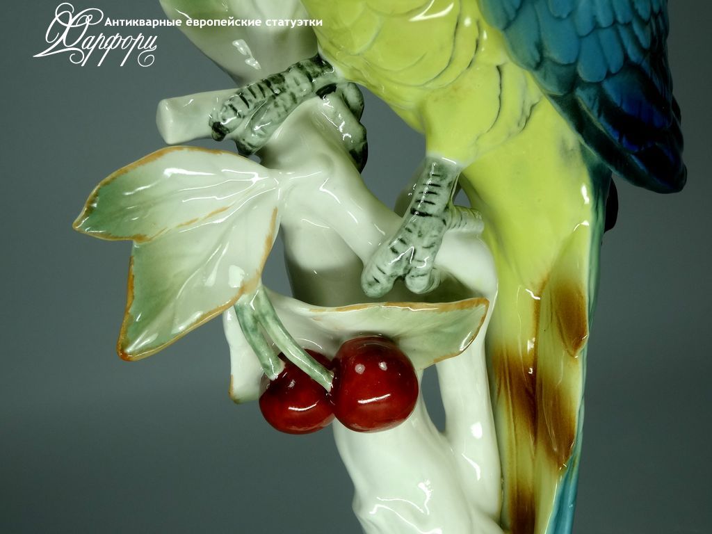 Фарфоровая статуэтка KARL ENS Попугай с вишней Оригинальная фарфоровая статуэтка мануфактуры KARL ENS (ГЕРМАНИЯ, 1940-44г).