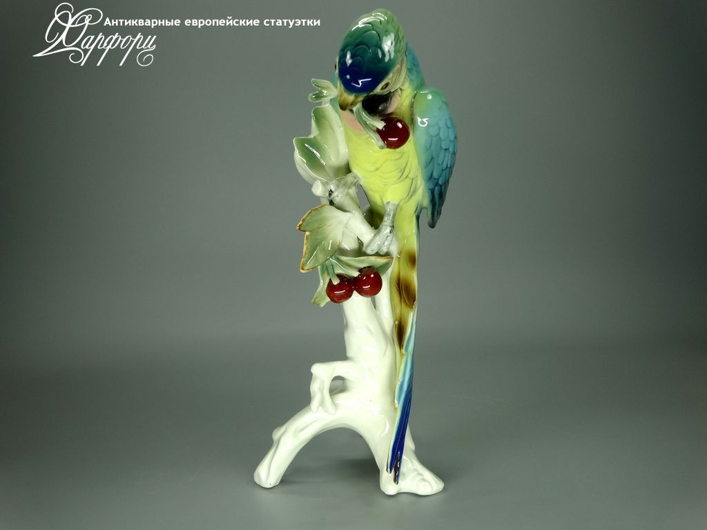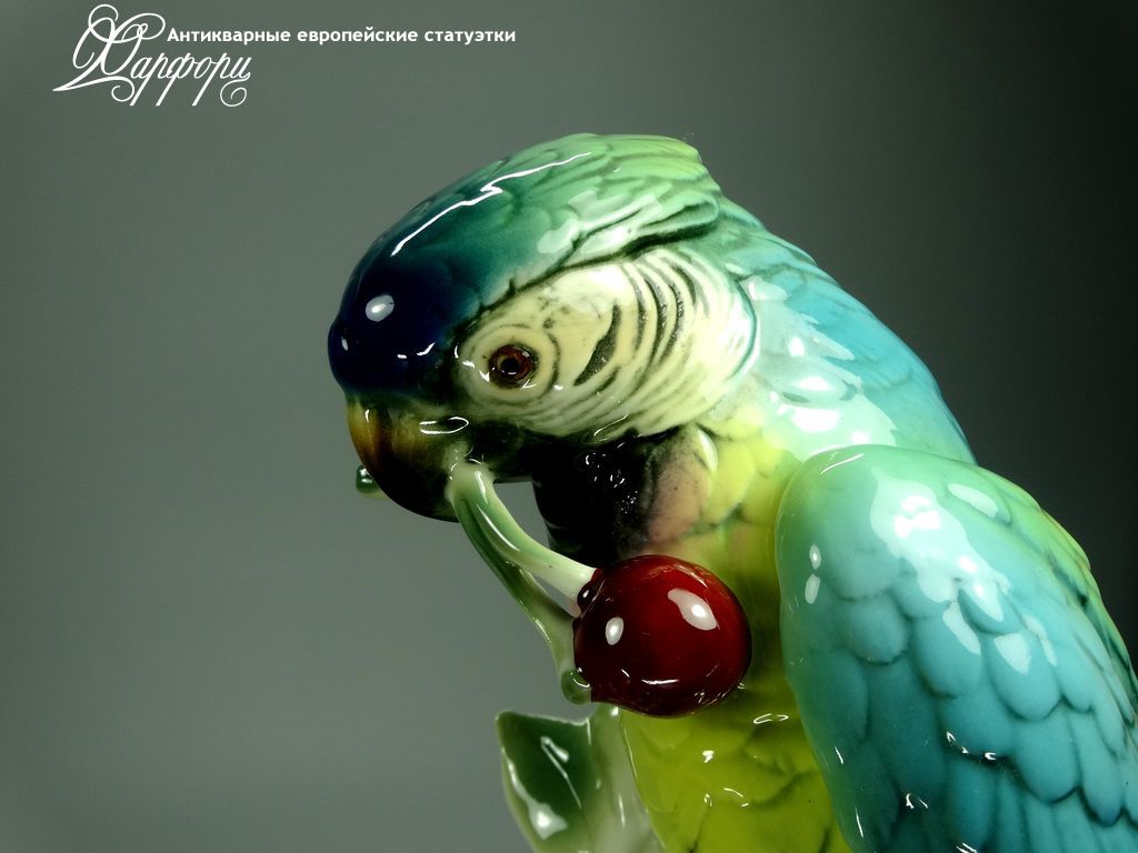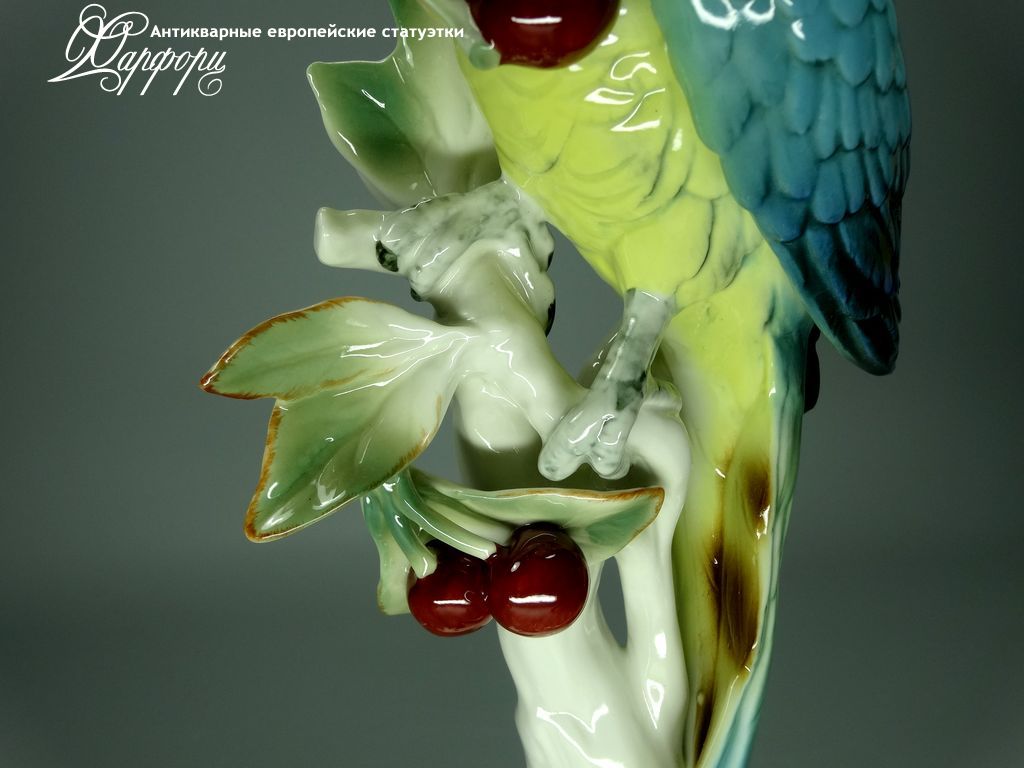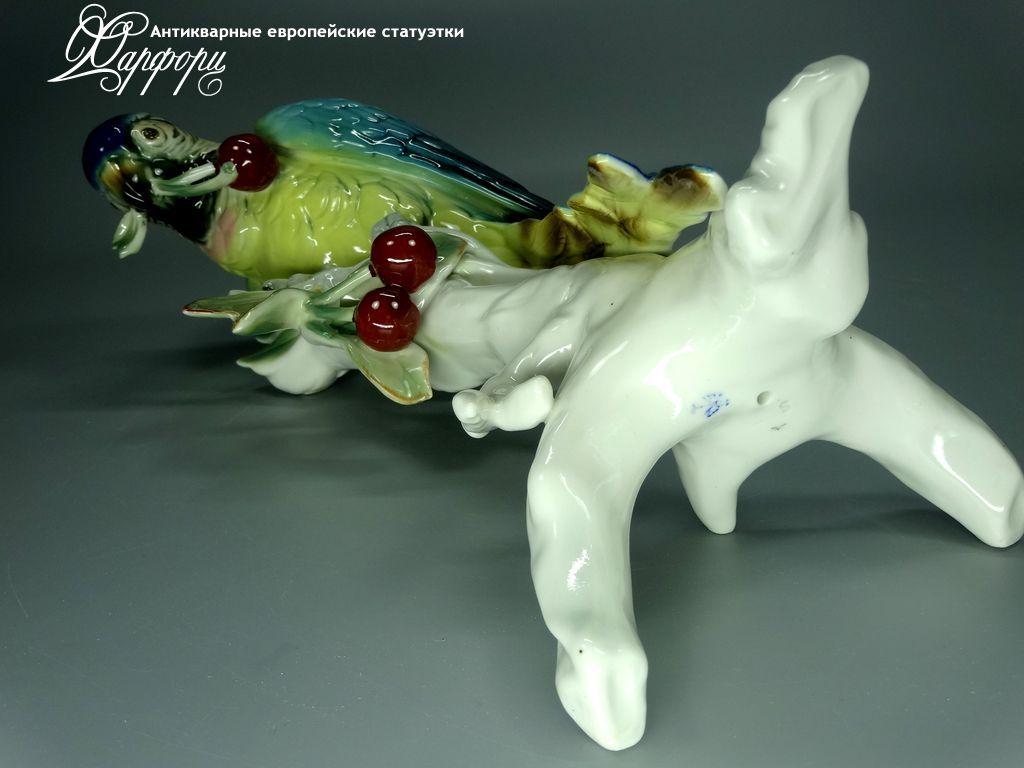 Фарфоровая статуэтка KARL ENS Попугай с вишней Оригинальная фарфоровая статуэтка мануфактуры KARL ENS (ГЕРМАНИЯ, 1940-44г).
