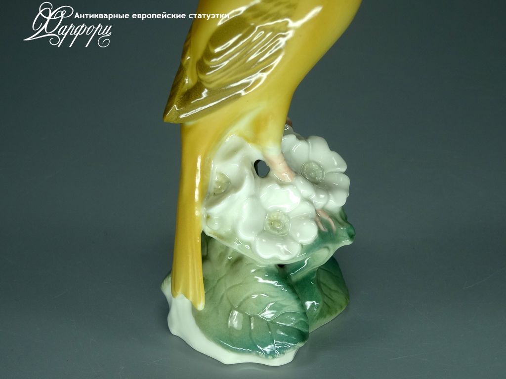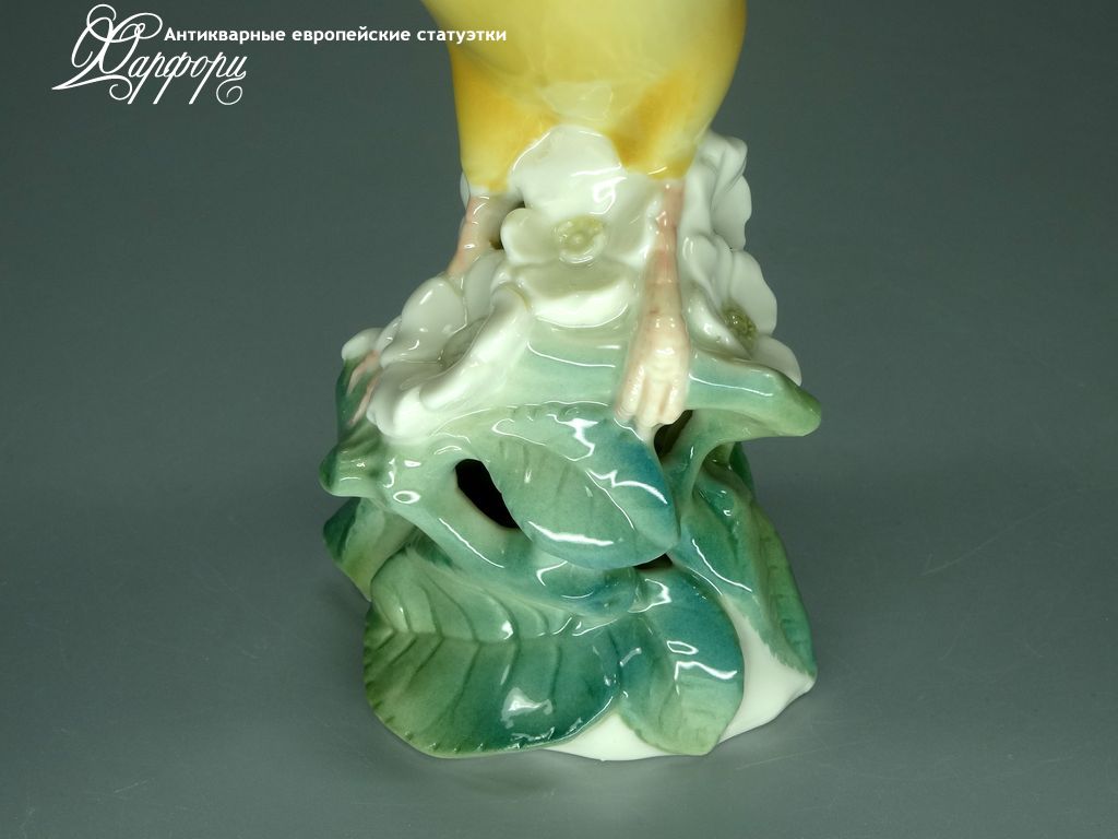 Фарфоровая статуэтка Nymphenburg Канарейка Оригинальная фарфоровая статуэтка мануфактуры Nymphenburg (ГЕРМАНИЯ, 1960-70г).
