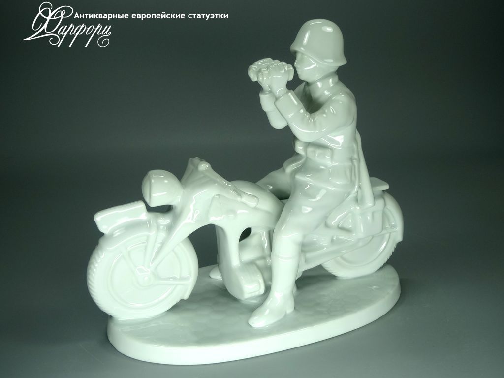 Фарфоровая статуэтка Bavariya 5253/72A "Немецкий солдат на мотоцикле"