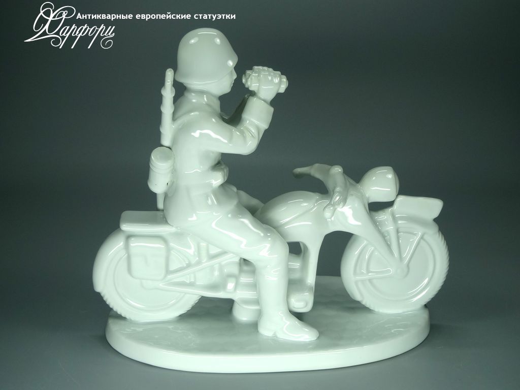 Фарфоровая статуэтка Bavariya Немецкий солдат на мотоцикле Фарфоровая статуэтка (ГЕРМАНИЯ, 1960-80г).