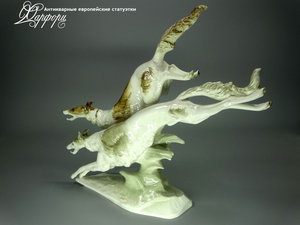 Фарфоровая статуэтка Hutschenreuther Бегущие борзые Оригинальная фарфоровая статуэтка мануфактуры Hutschenreuther (ГЕРМАНИЯ, 1939-44г).
