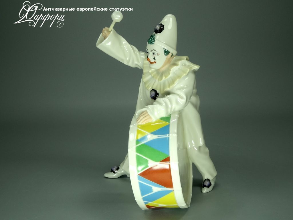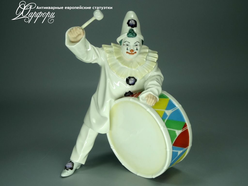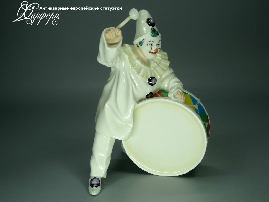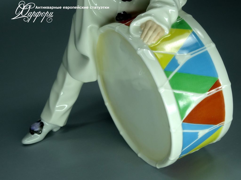 Фарфоровая статуэтка Hutschenreuther Клоун с барабаном Оригинальная фарфоровая статуэтка мануфактуры Hutschenreuther (ГЕРМАНИЯ, 1982г).