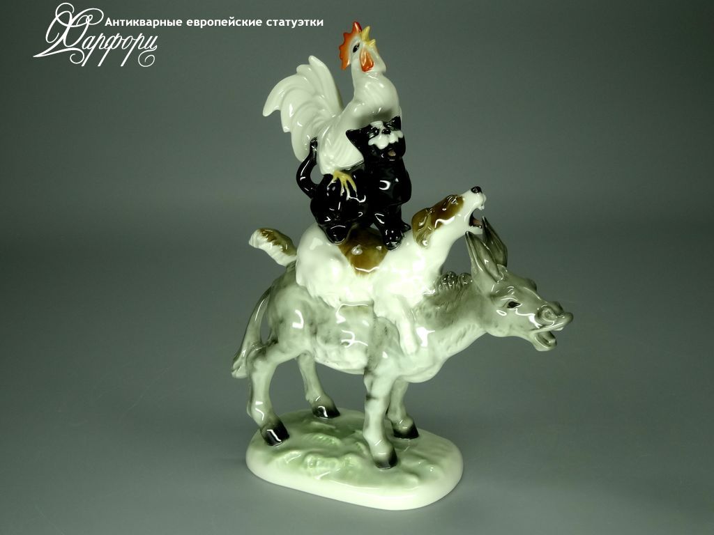 Фарфоровая статуэтка Hutschenreuther Бременские музыканты Оригинальная фарфоровая статуэтка мануфактуры Hutschenreuther (ГЕРМАНИЯ, 1965-75г).