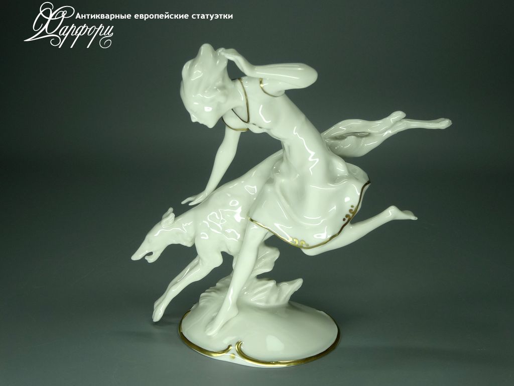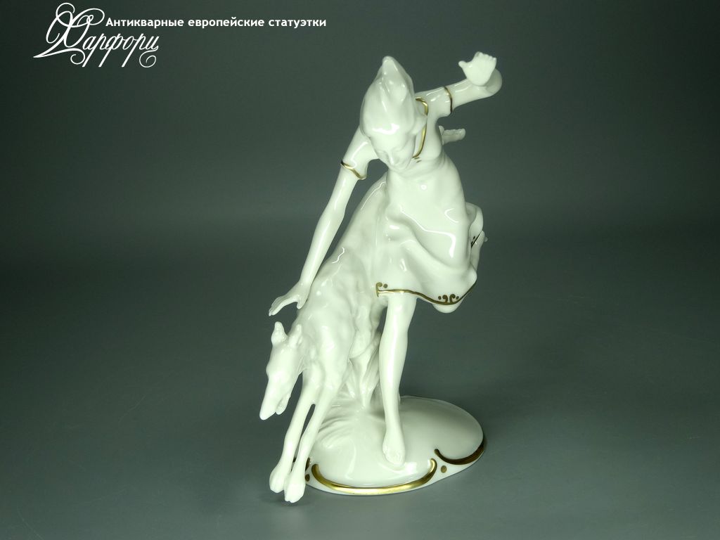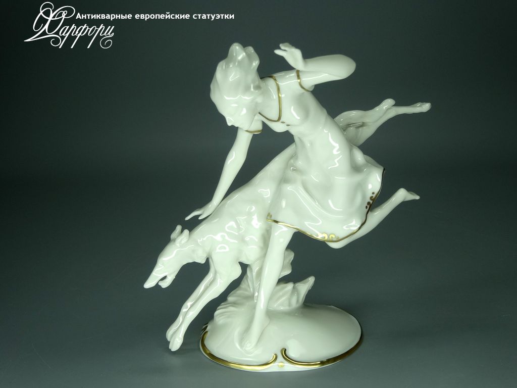 Фарфоровая статуэтка Hutschenreuther Девушка с борзой Оригинальная фарфоровая статуэтка мануфактуры Hutschenreuther (ГЕРМАНИЯ, 1939-44г).
