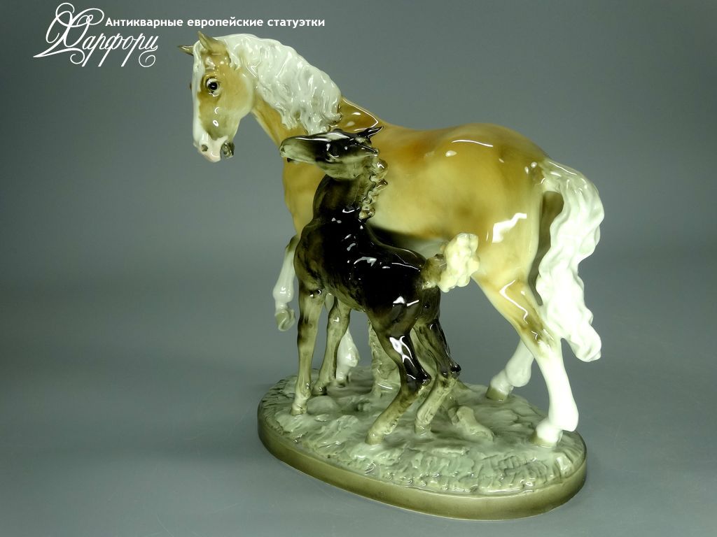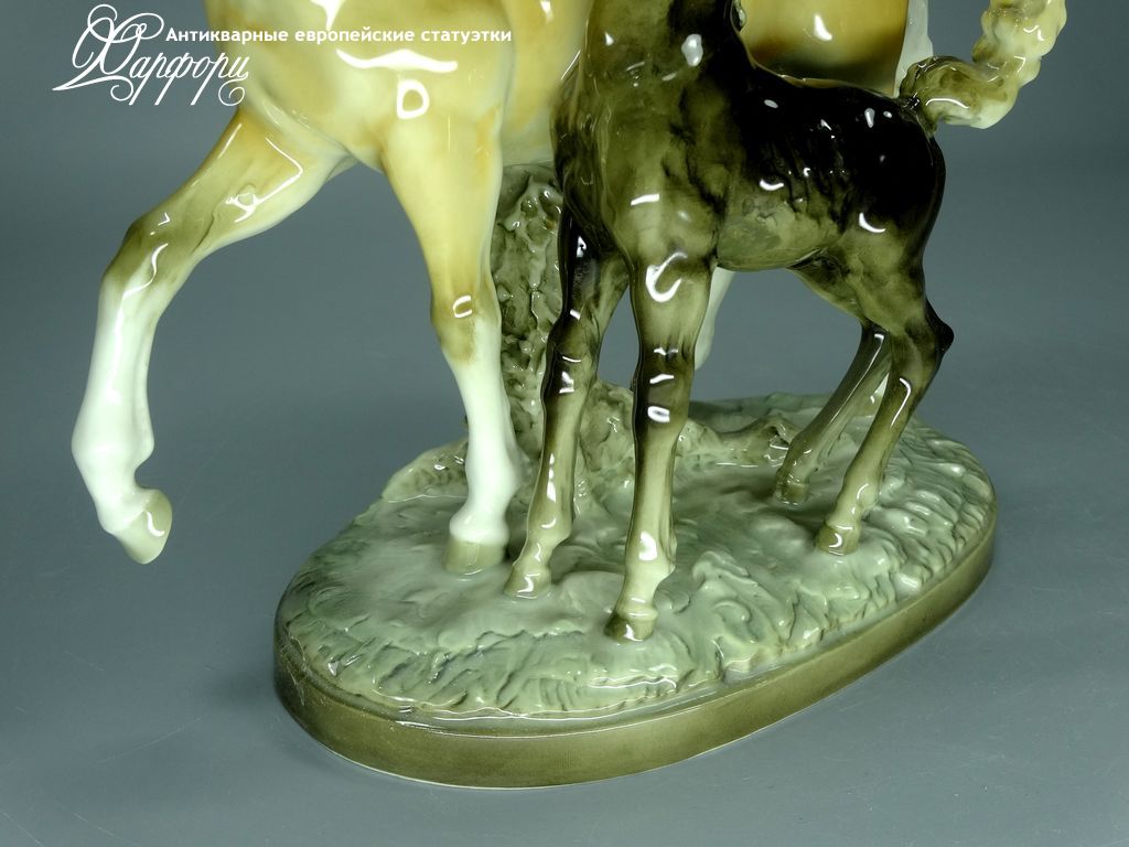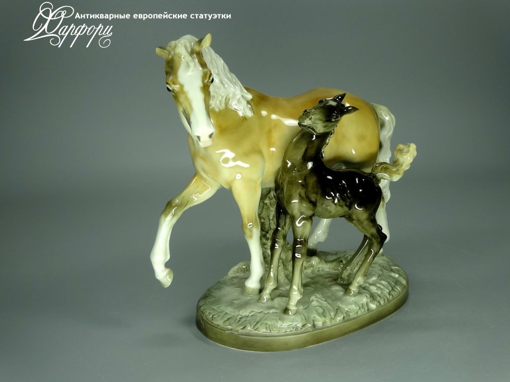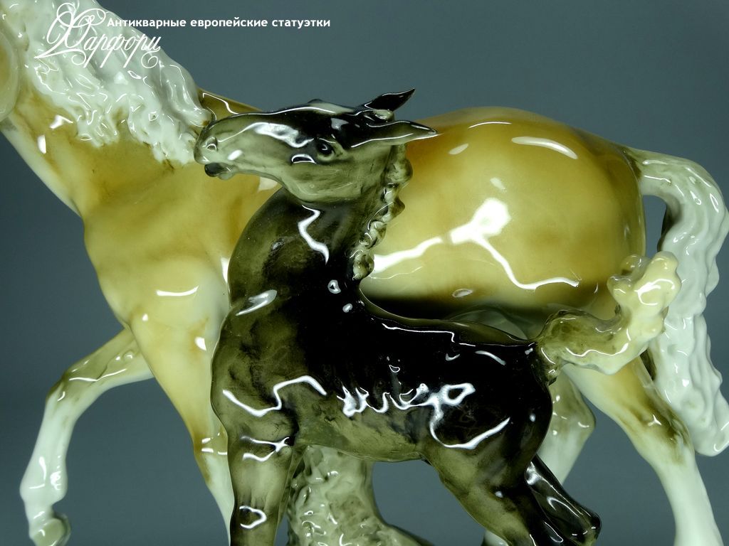 Фарфоровая статуэтка Hutschenreuther Кобыла с жеребенком Оригинальная фарфоровая статуэтка мануфактуры Hutschenreuther (ГЕРМАНИЯ, до 1939г).
