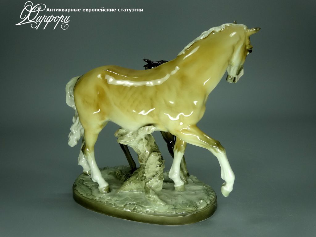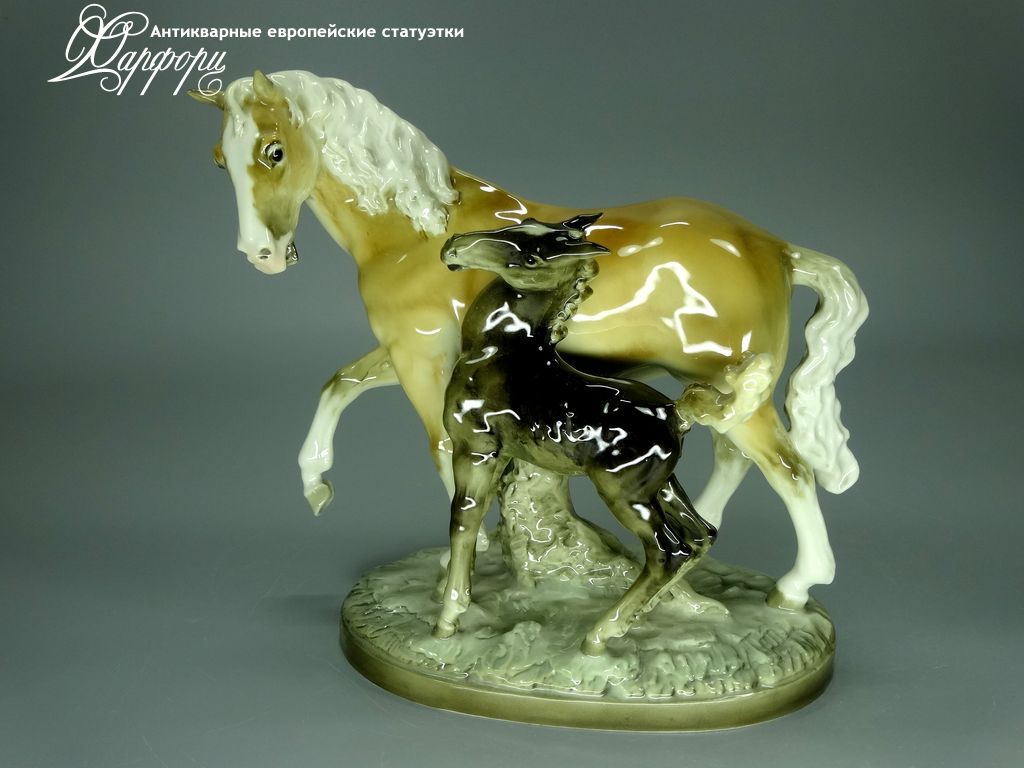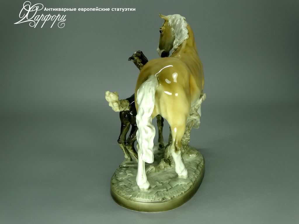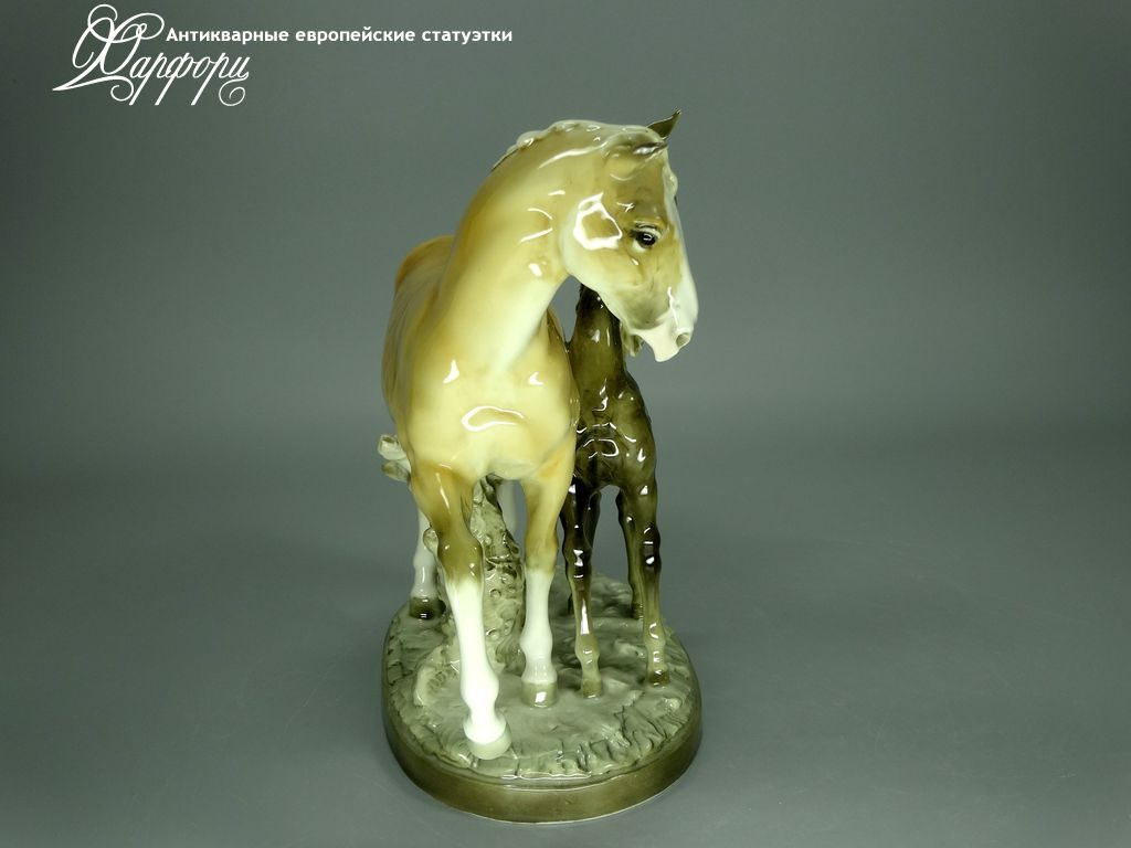 Фарфоровая статуэтка Hutschenreuther Кобыла с жеребенком Оригинальная фарфоровая статуэтка мануфактуры Hutschenreuther (ГЕРМАНИЯ, до 1939г).