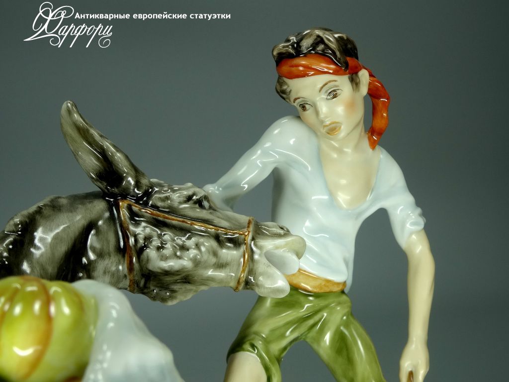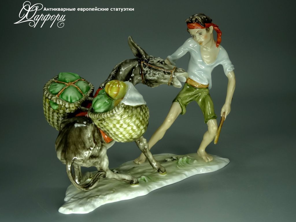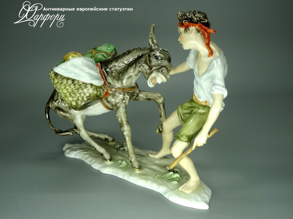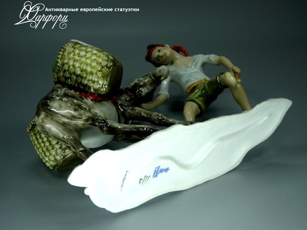 Фарфоровая статуэтка Kaiser Упрямый ослик Оригинальная фарфоровая статуэтка мануфактуры Kaiser (ГЕРМАНИЯ, 1960-80г).