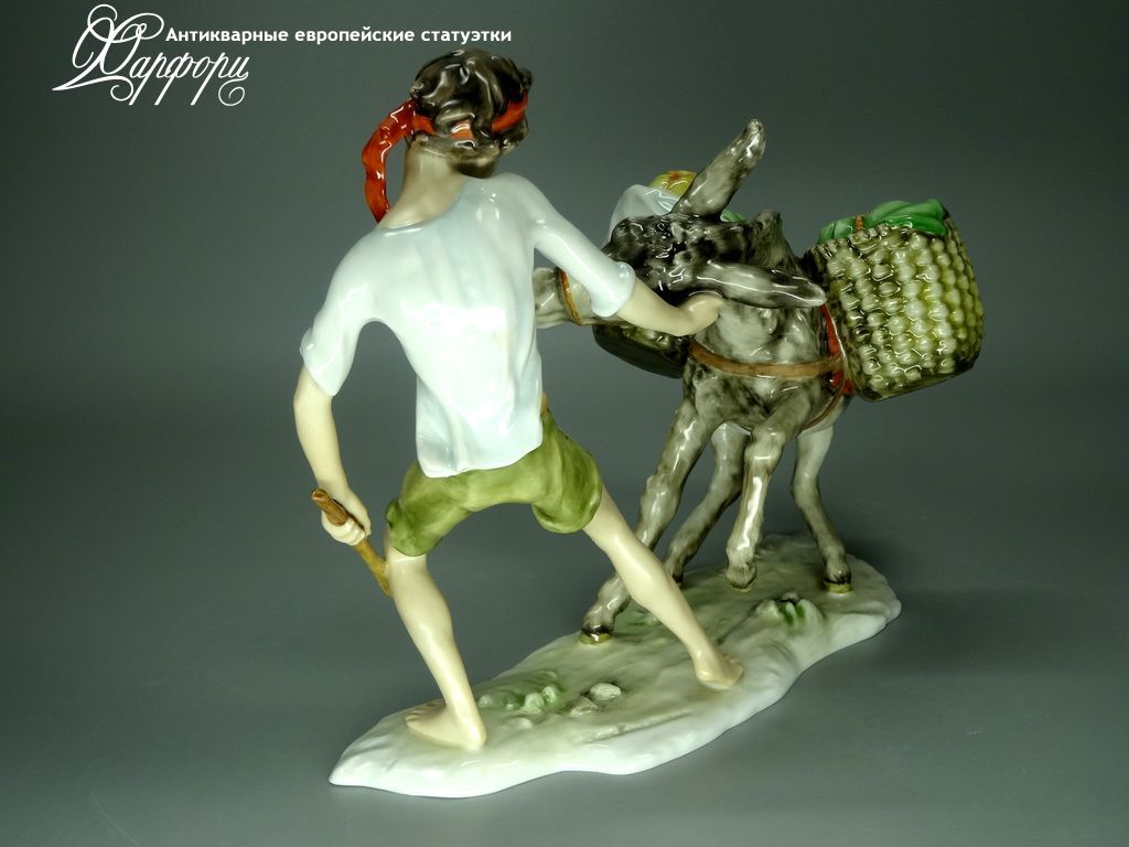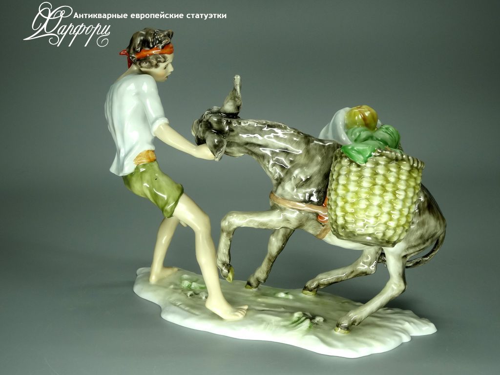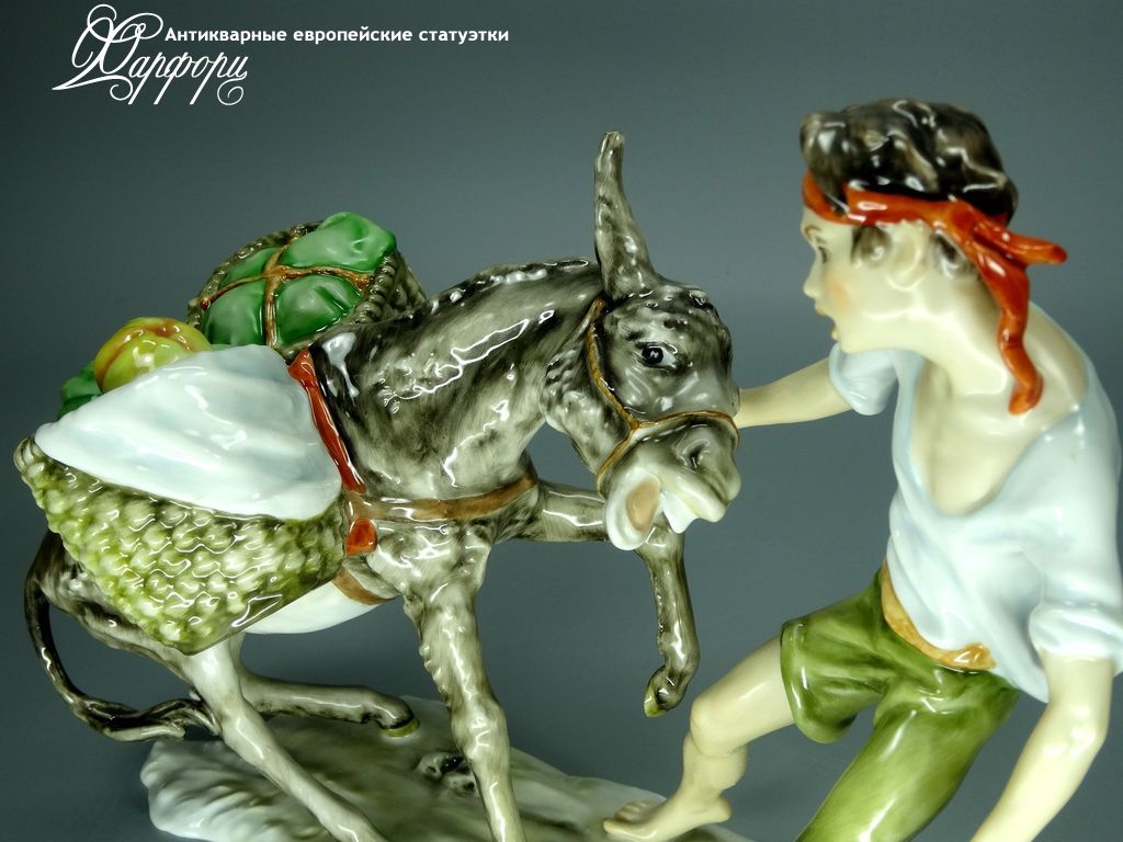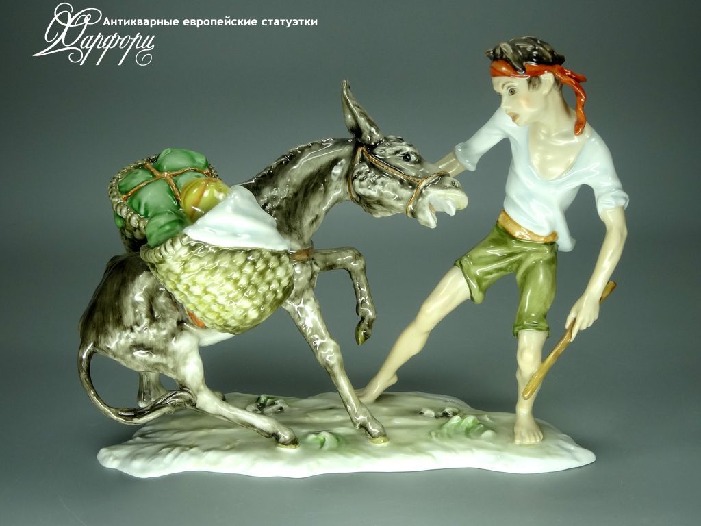 Фарфоровая статуэтка Kaiser Упрямый ослик Оригинальная фарфоровая статуэтка мануфактуры Kaiser (ГЕРМАНИЯ, 1960-80г).