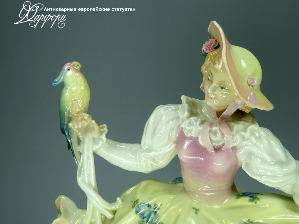 Фарфоровая статуэтка KARL ENS Дама с попугаем Оригинальная фарфоровая статуэтка мануфактуры KARL ENS (ГЕРМАНИЯ, 1930-40г).