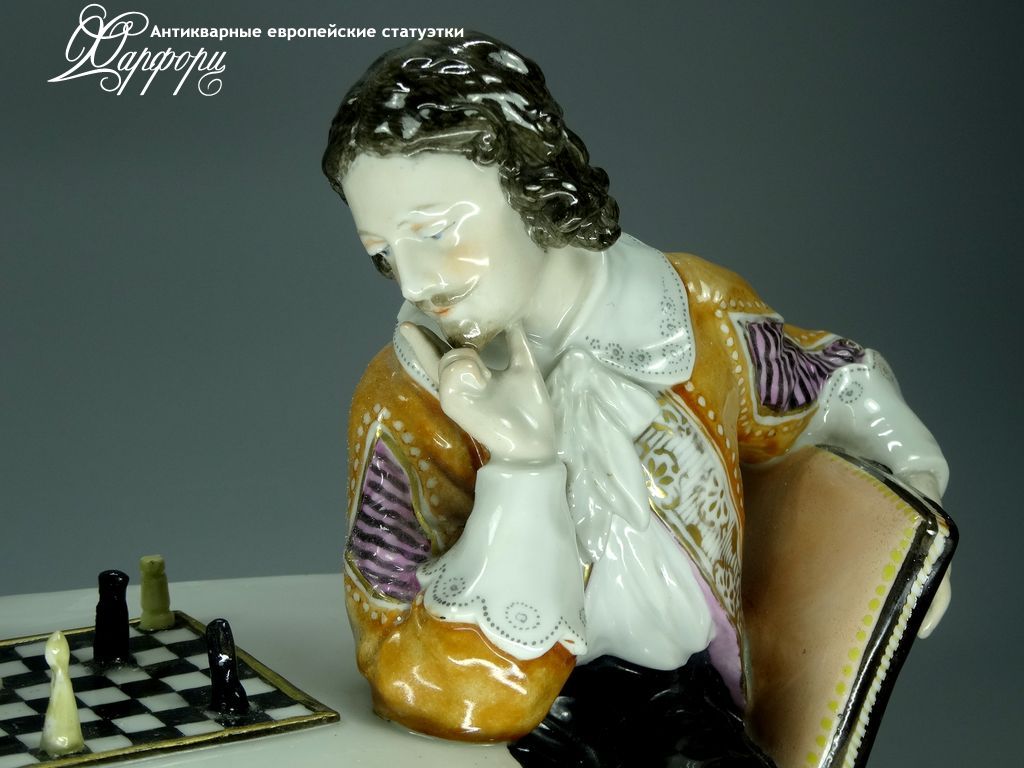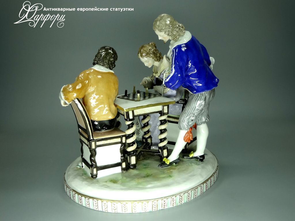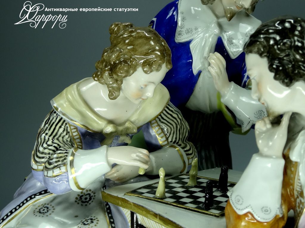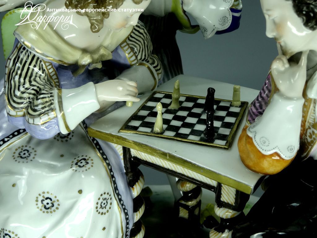 Фарфоровая статуэтка Ludwigsburg Игра в шахматы Оригинальная фарфоровая статуэтка мануфактуры Ludwigsburg (ГЕРМАНИЯ, 1915-20г).