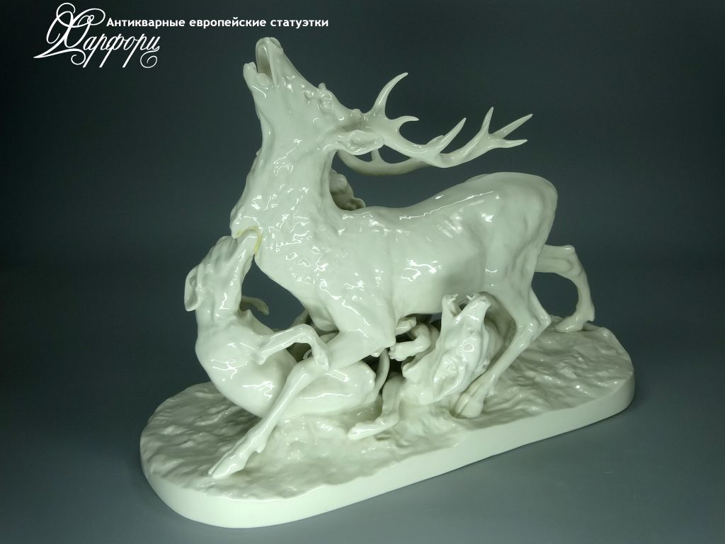 Фарфоровая статуэтка Nymphenburg Охота на оленя Оригинальная фарфоровая статуэтка мануфактуры Nymphenburg (ГЕРМАНИЯ, 1880-1900г).
