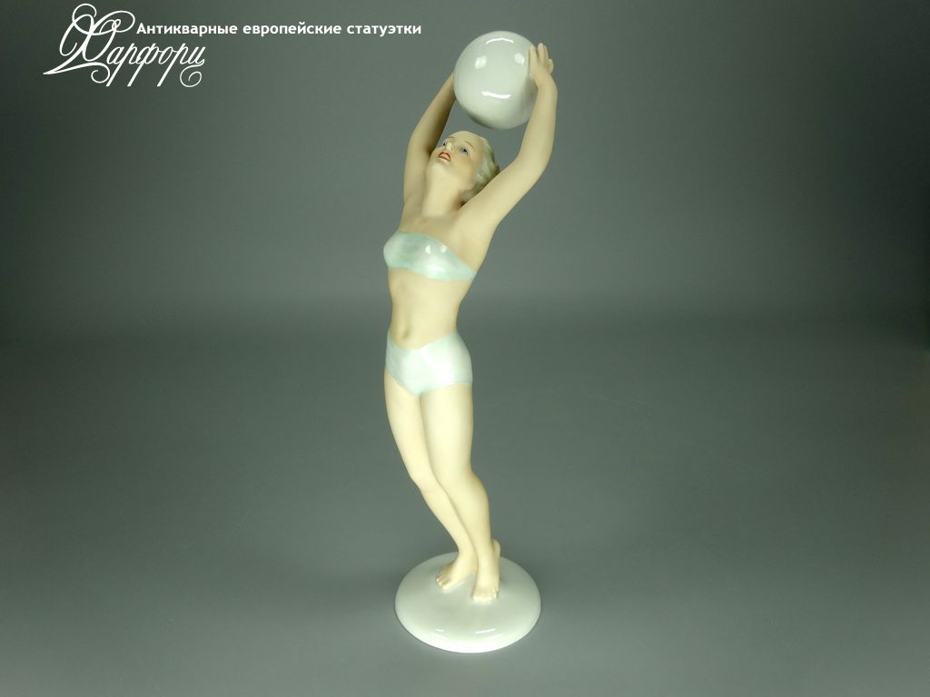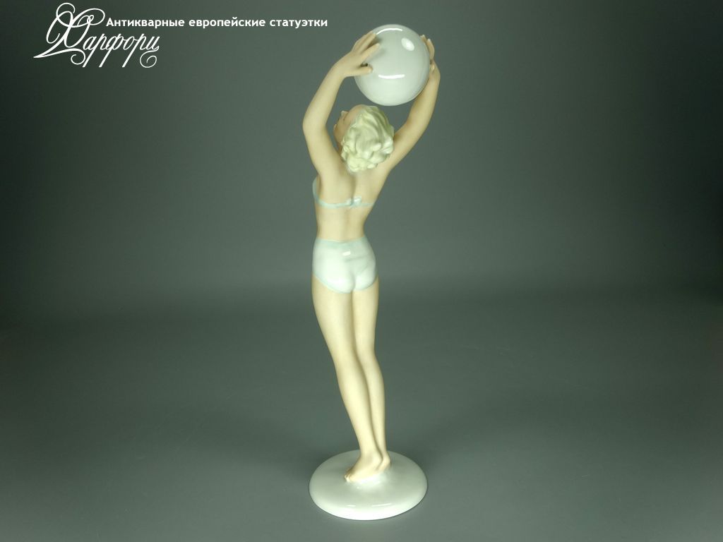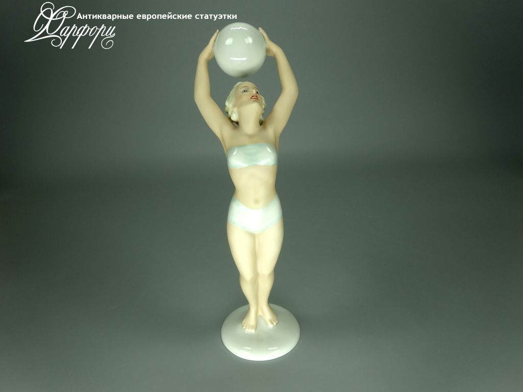 Фарфоровая статуэтка Schaubach Kunst Волейболистка Оригинальная фарфоровая статуэтка мануфактуры Schaubach Kunst (ГЕРМАНИЯ, 1935-44г).