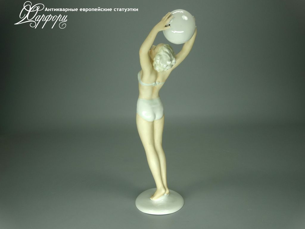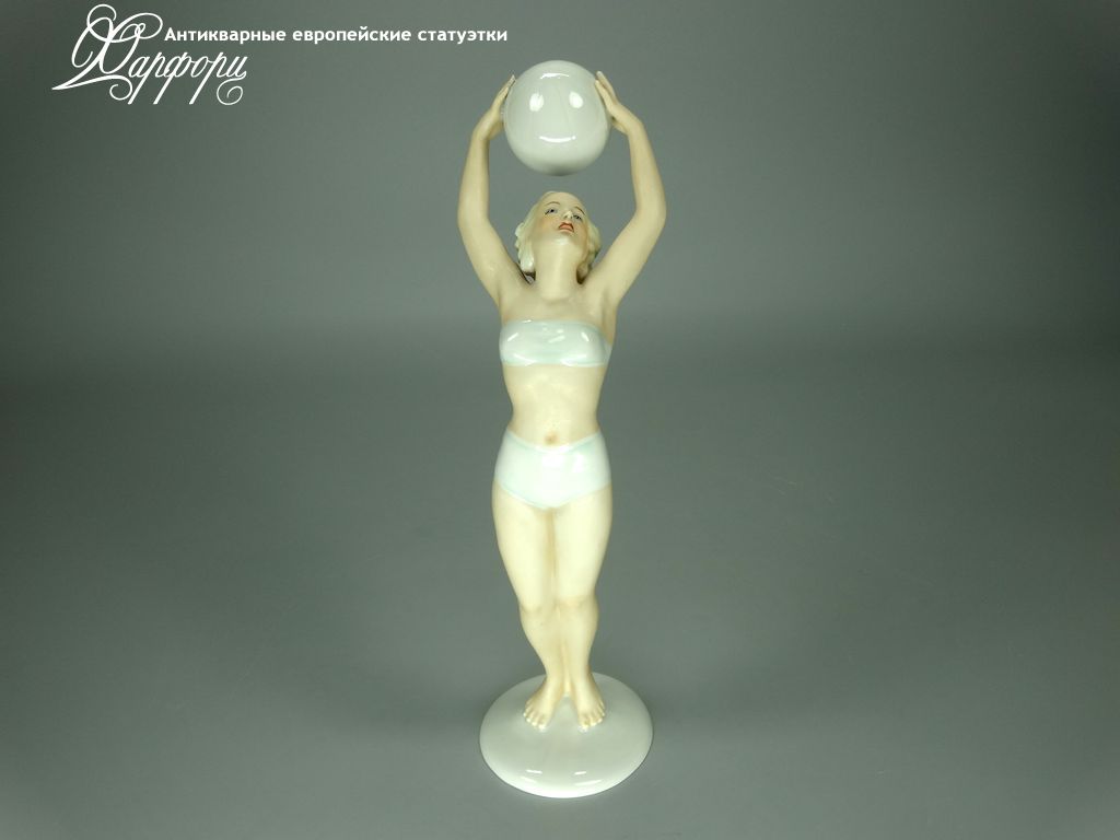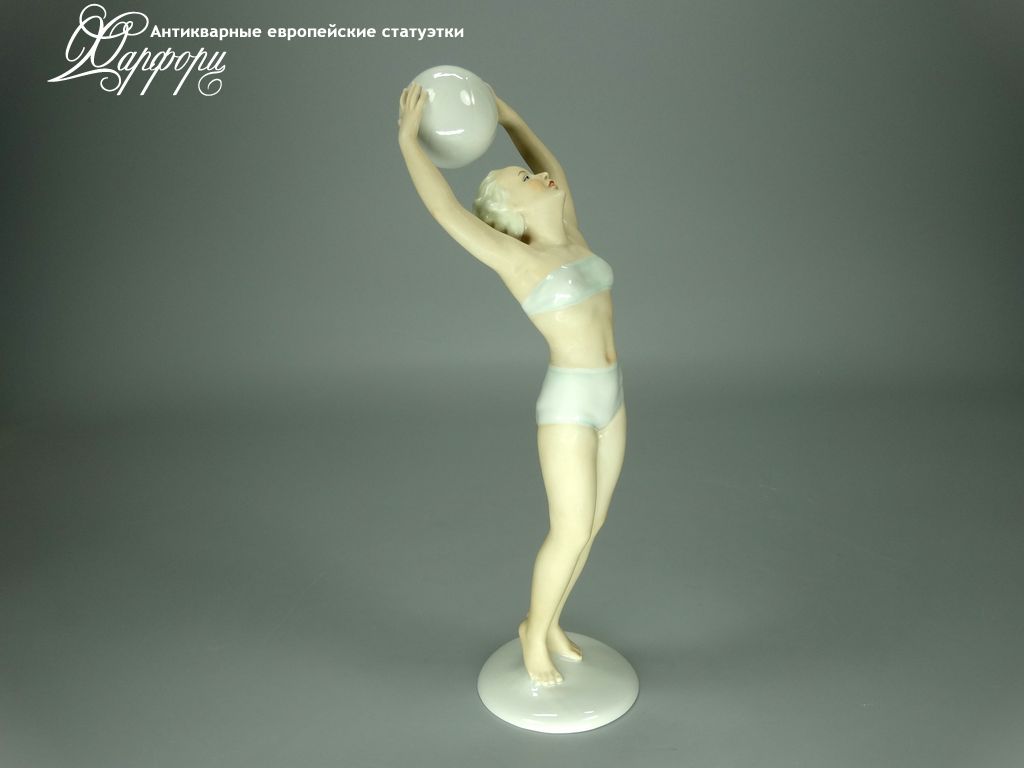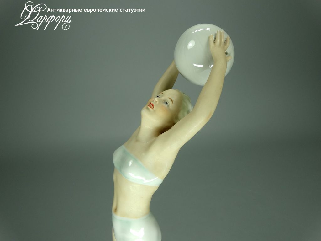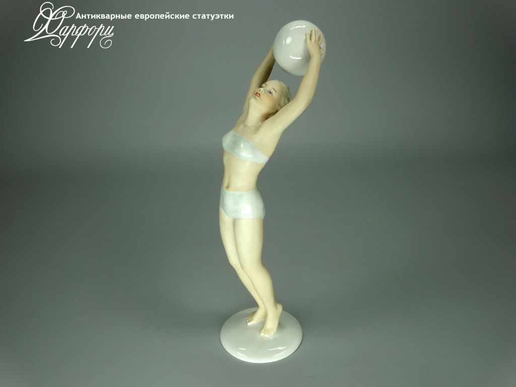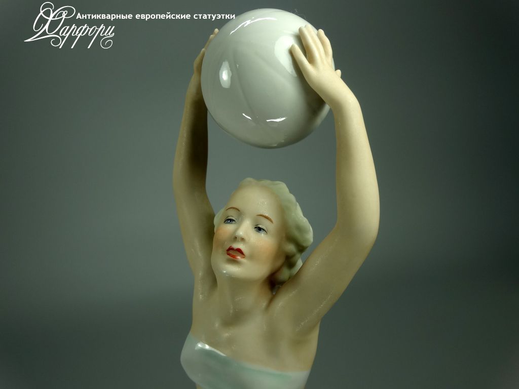Фарфоровая статуэтка Schaubach Kunst Волейболистка Оригинальная фарфоровая статуэтка мануфактуры Schaubach Kunst (ГЕРМАНИЯ, 1935-44г).