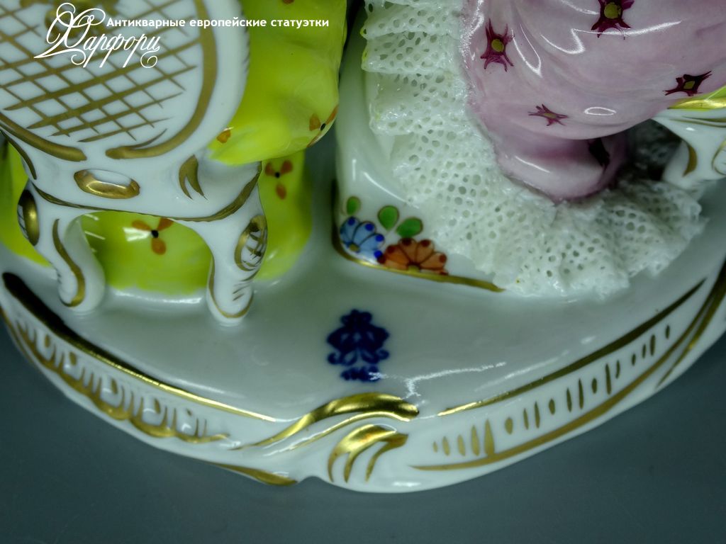 Фарфоровая статуэтка Volkstedt Чаепитие Оригинальная фарфоровая статуэтка мануфактуры Volkstedt (ГЕРМАНИЯ, 1965-75г).