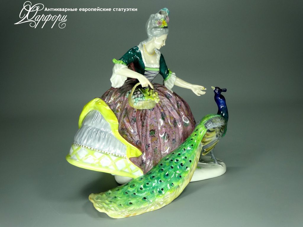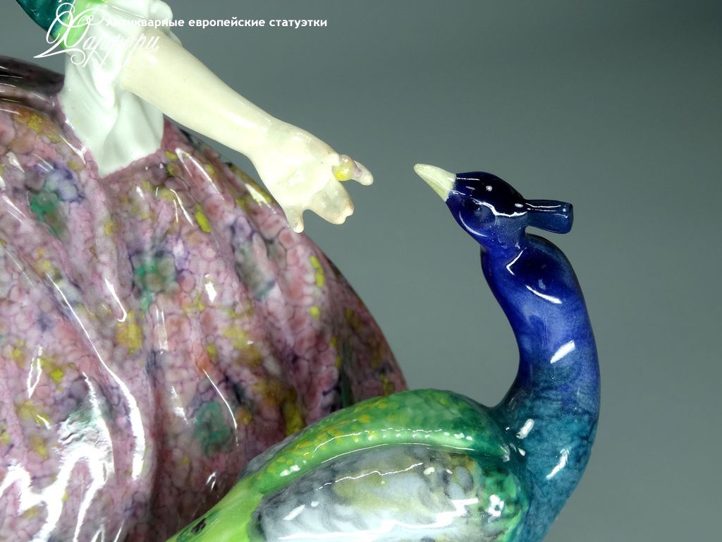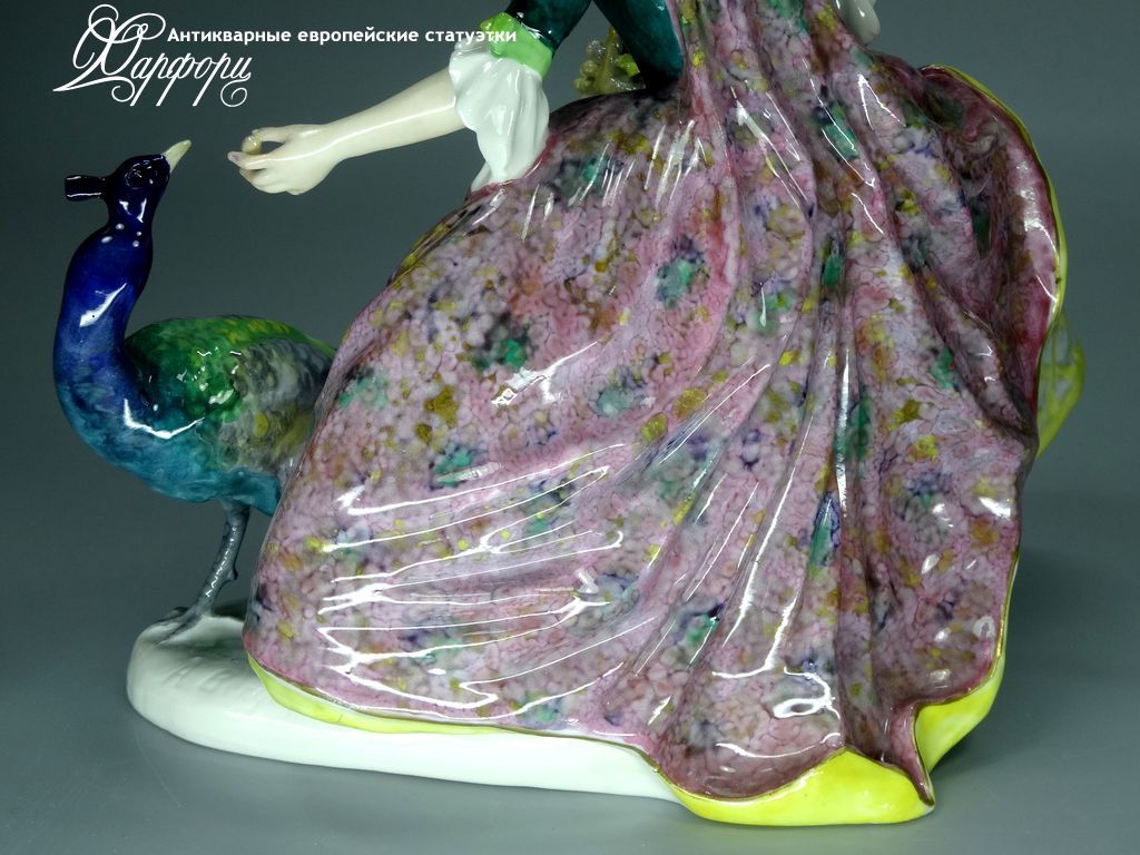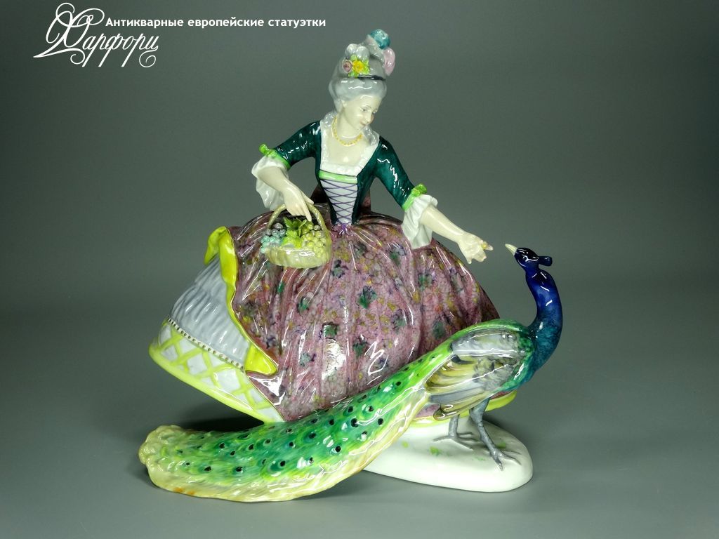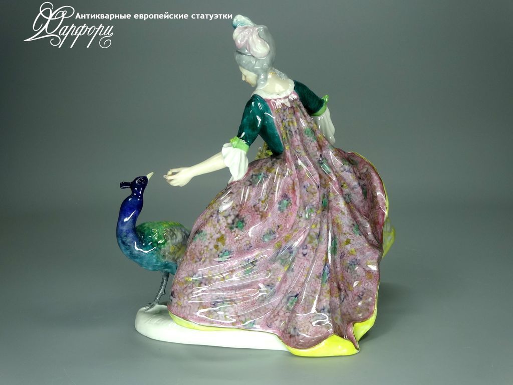 Фарфоровая статуэтка Volkstedt 5469/24A "Дама с павлином"