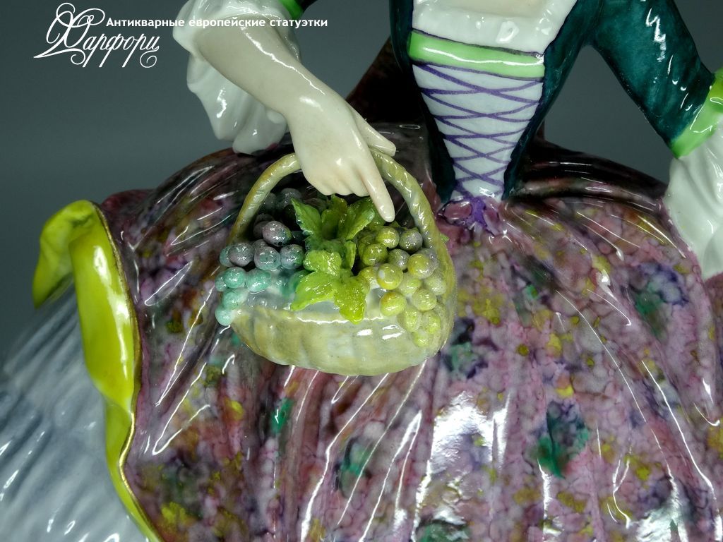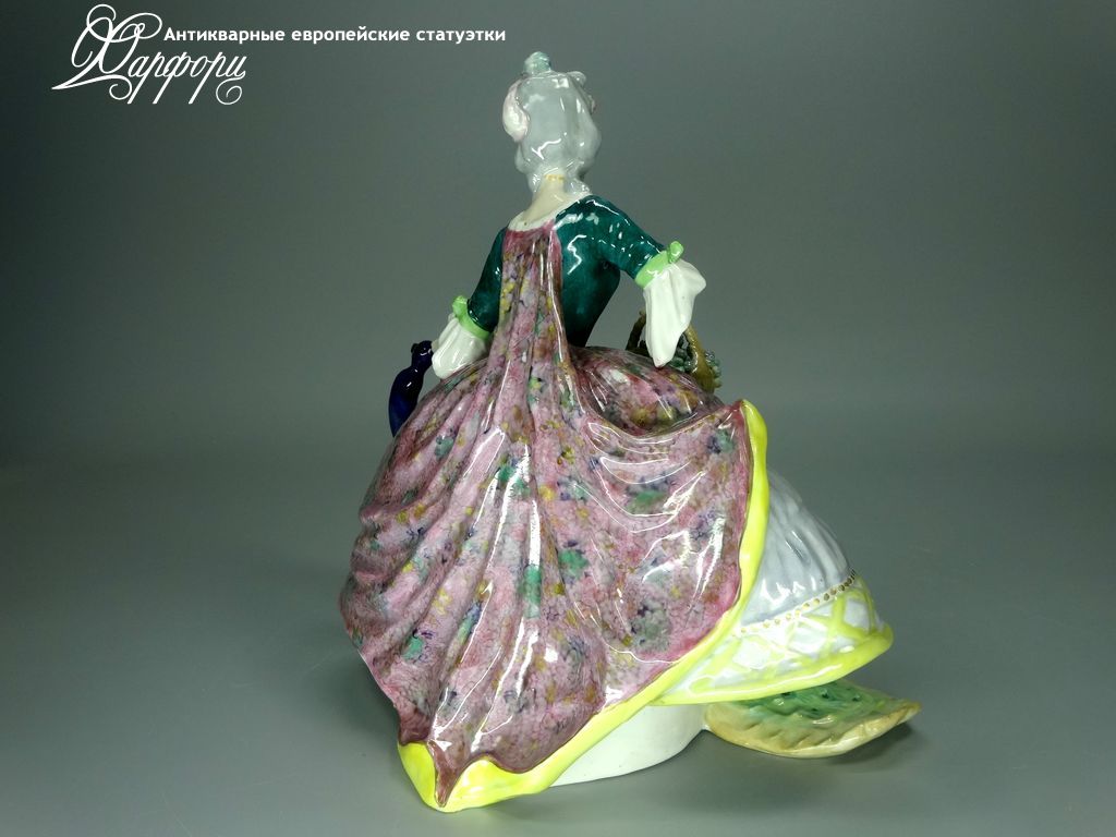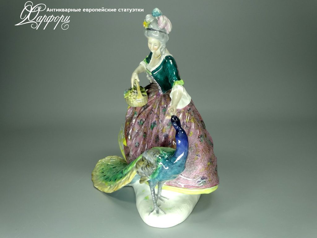 Фарфоровая статуэтка Volkstedt Дама с павлином Оригинальная фарфоровая статуэтка мануфактуры Volkstedt (ГЕРМАНИЯ, 1910-15г).