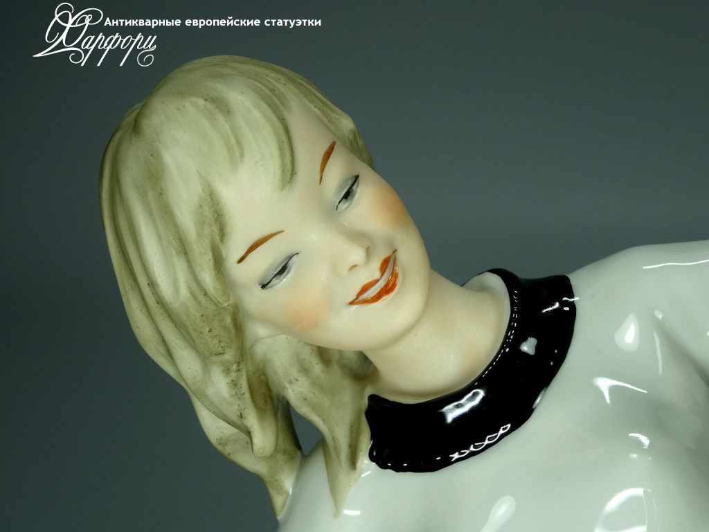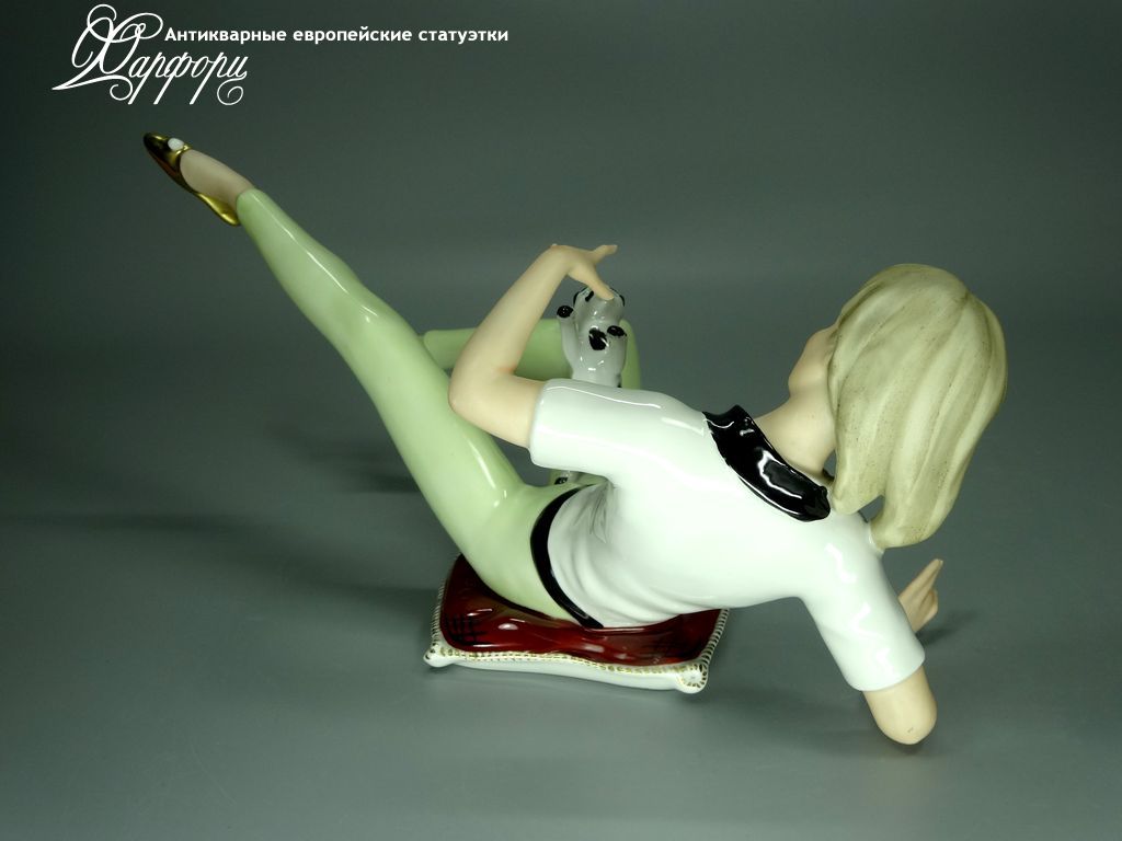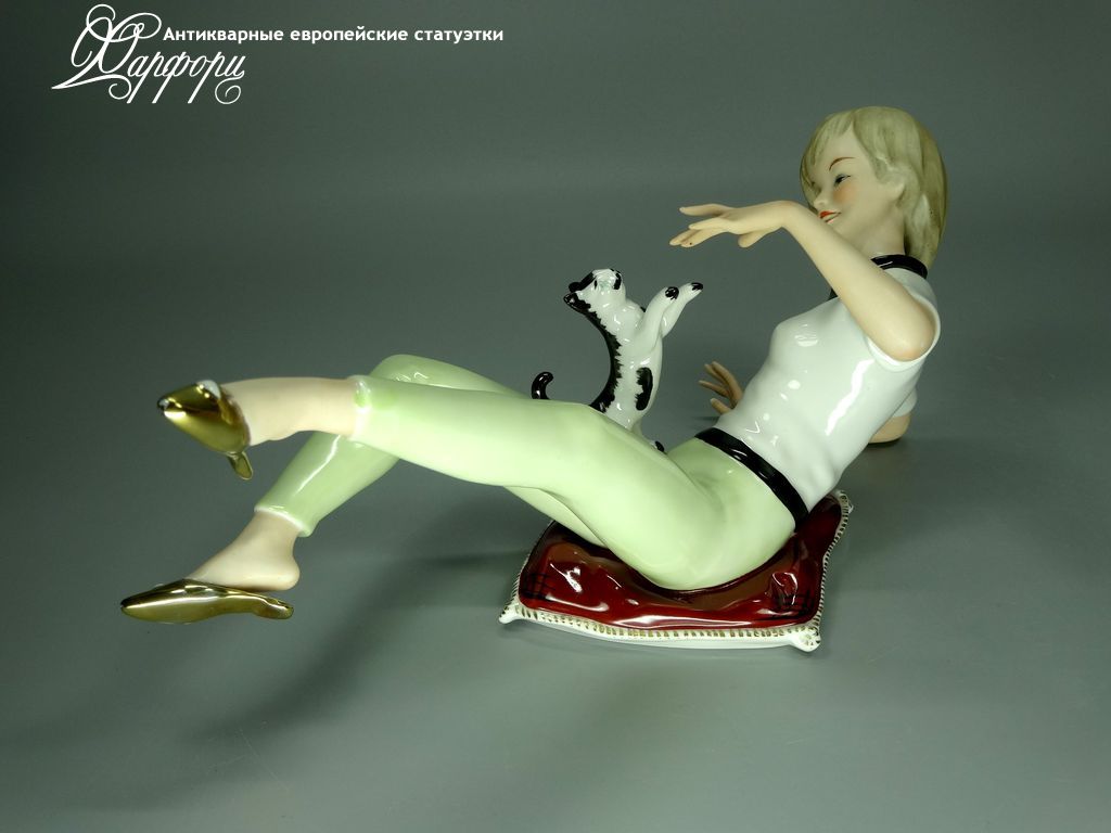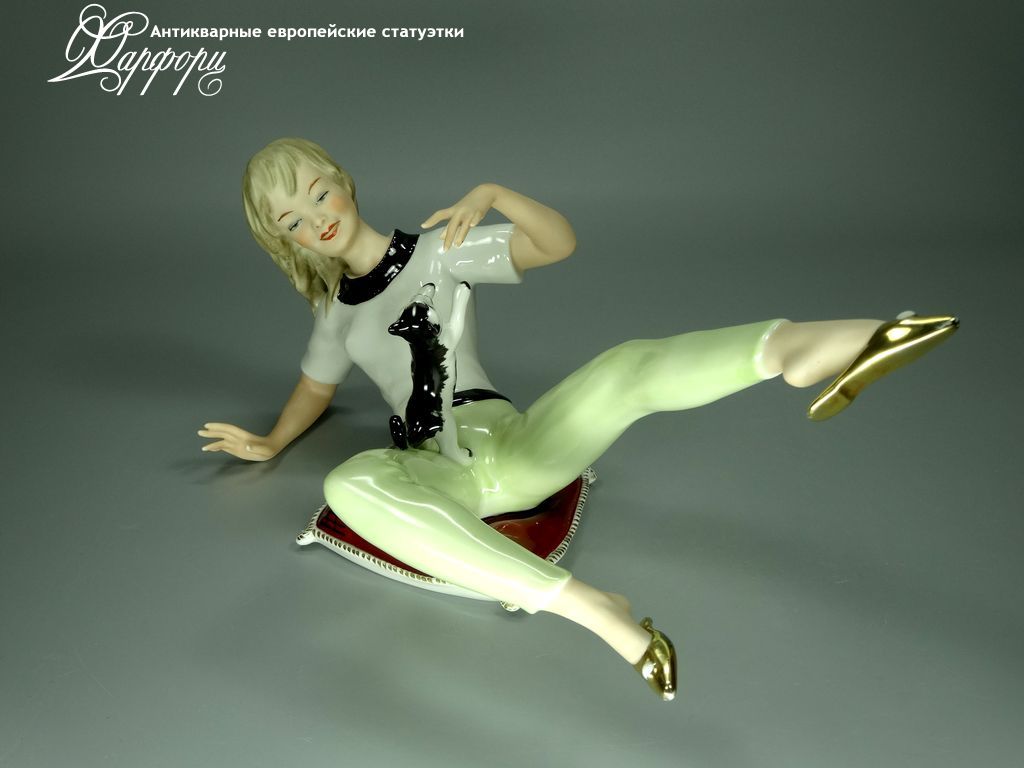 Фарфоровая статуэтка Wallendorf Девушка с кошкой Оригинальная фарфоровая статуэтка мануфактуры Wallendorf (ГЕРМАНИЯ, 1960-70г).