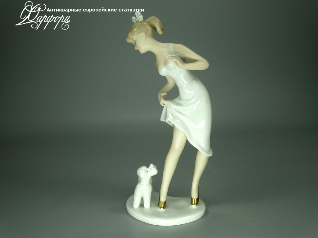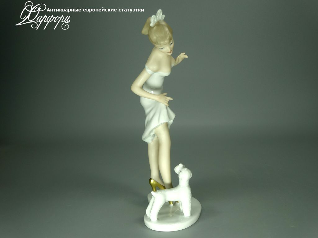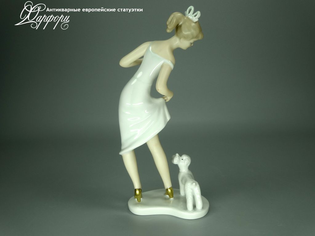 Фарфоровая статуэтка Wallendorf Девочка с пуделем Оригинальная фарфоровая статуэтка мануфактуры Wallendorf (ГЕРМАНИЯ, 1960-70г).