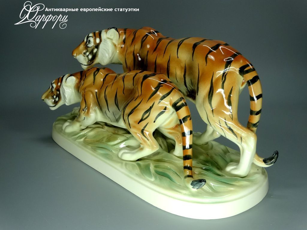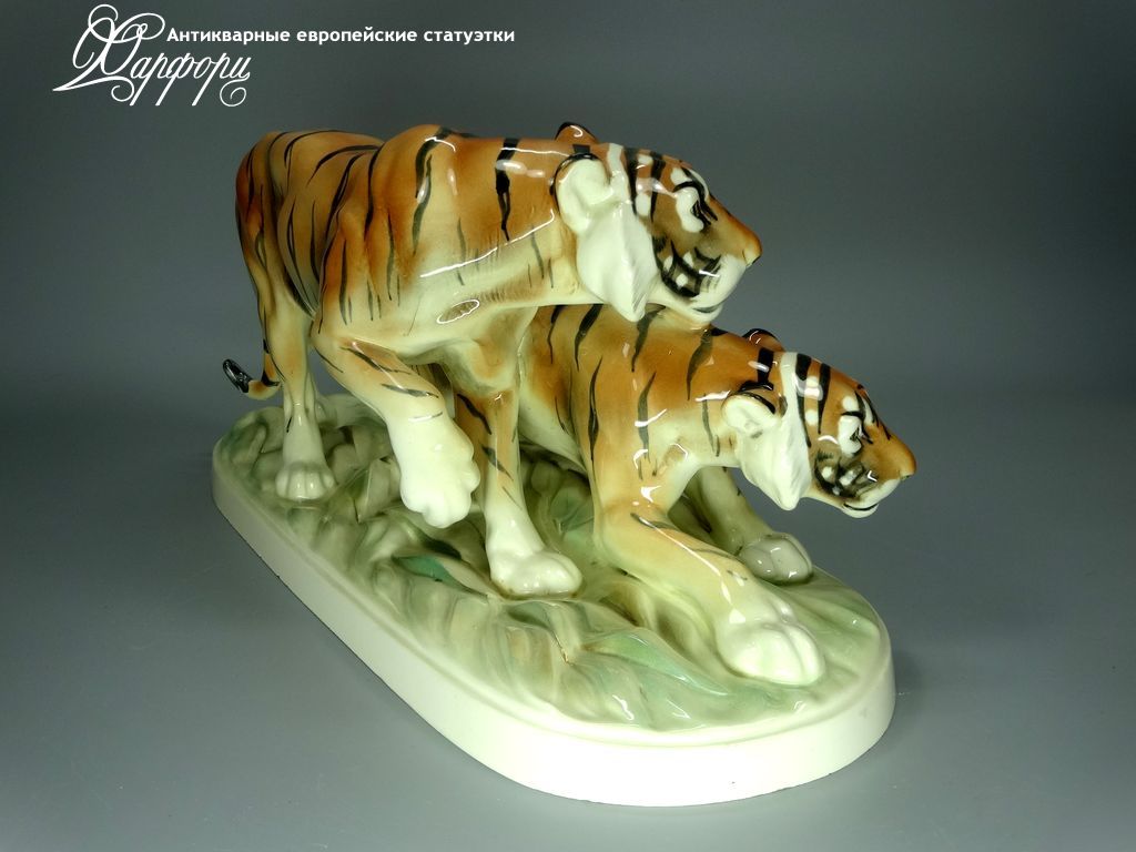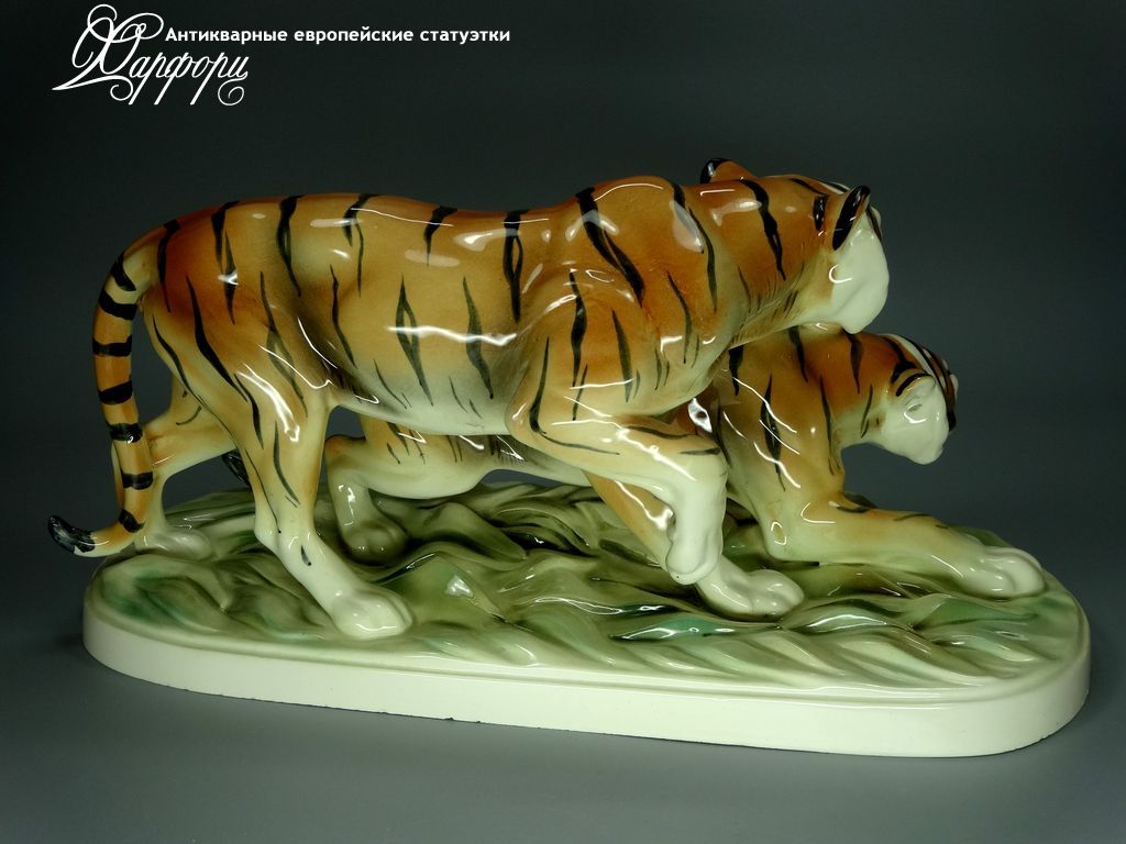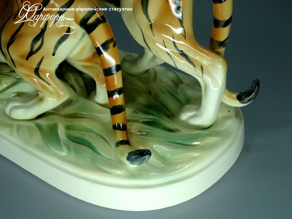 Керамическая статуэтка Katzhutte Пара тигров Оригинальная керамическая статуэтка мануфактуры Katzhutte (ГЕРМАНИЯ, 1930-44г).