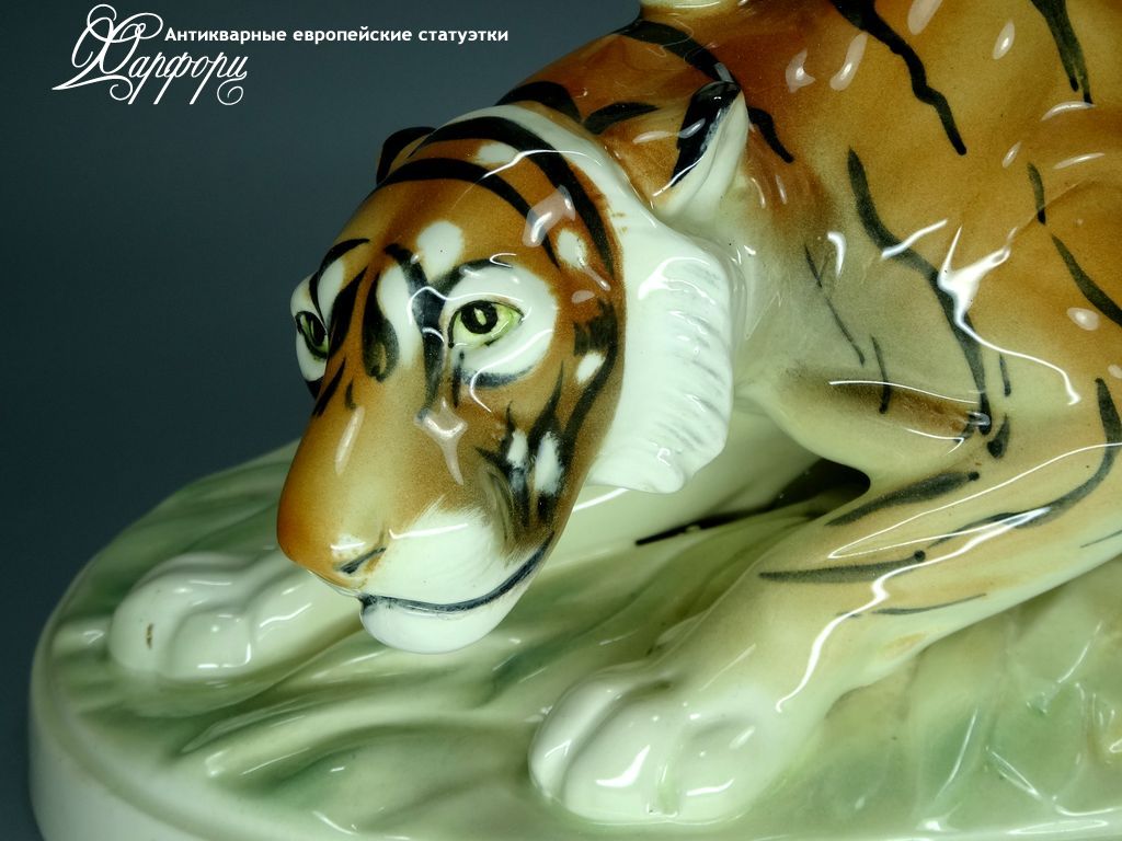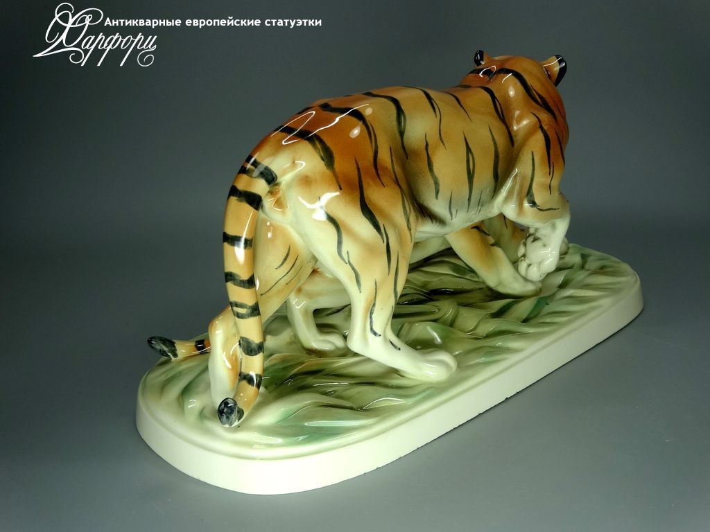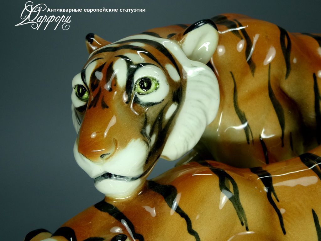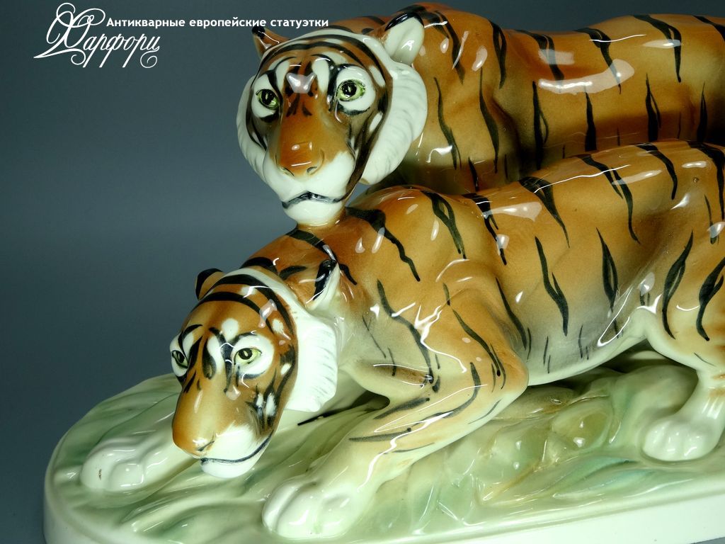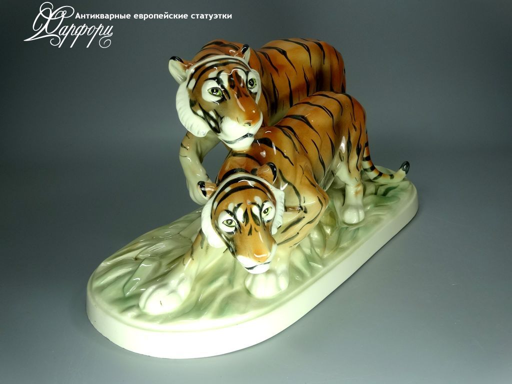 Керамическая статуэтка Katzhutte Пара тигров Оригинальная керамическая статуэтка мануфактуры Katzhutte (ГЕРМАНИЯ, 1930-44г).