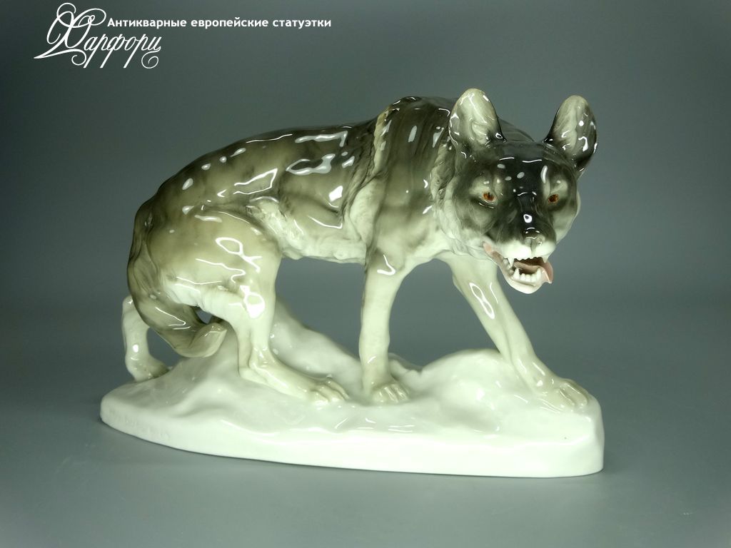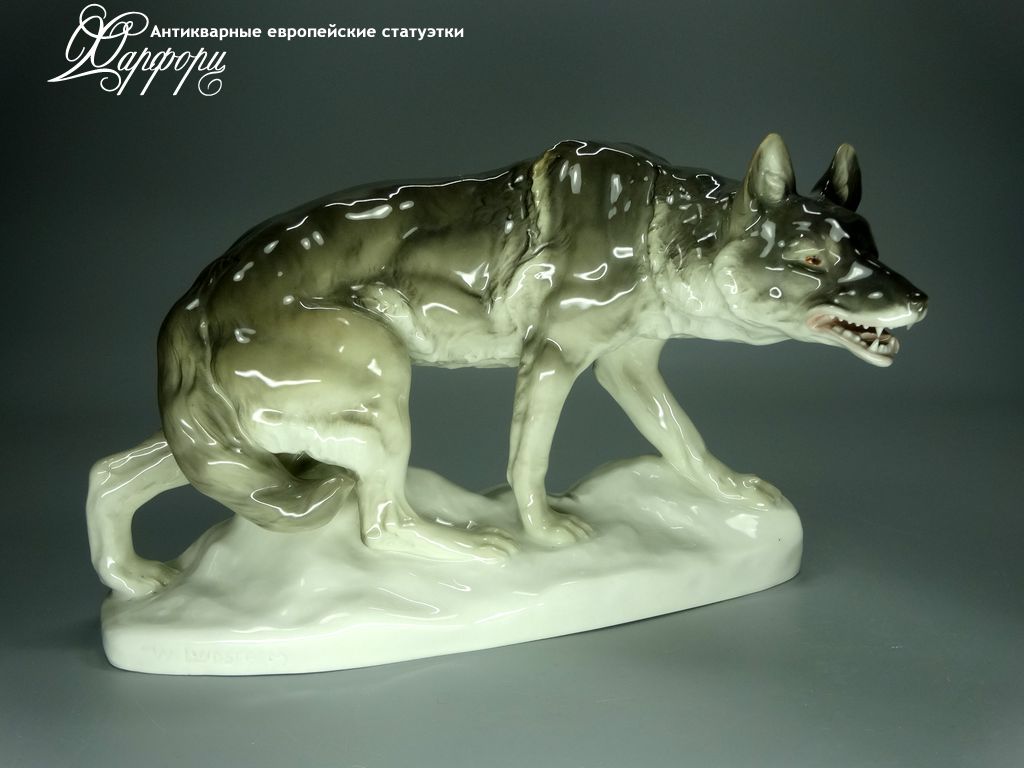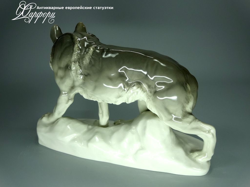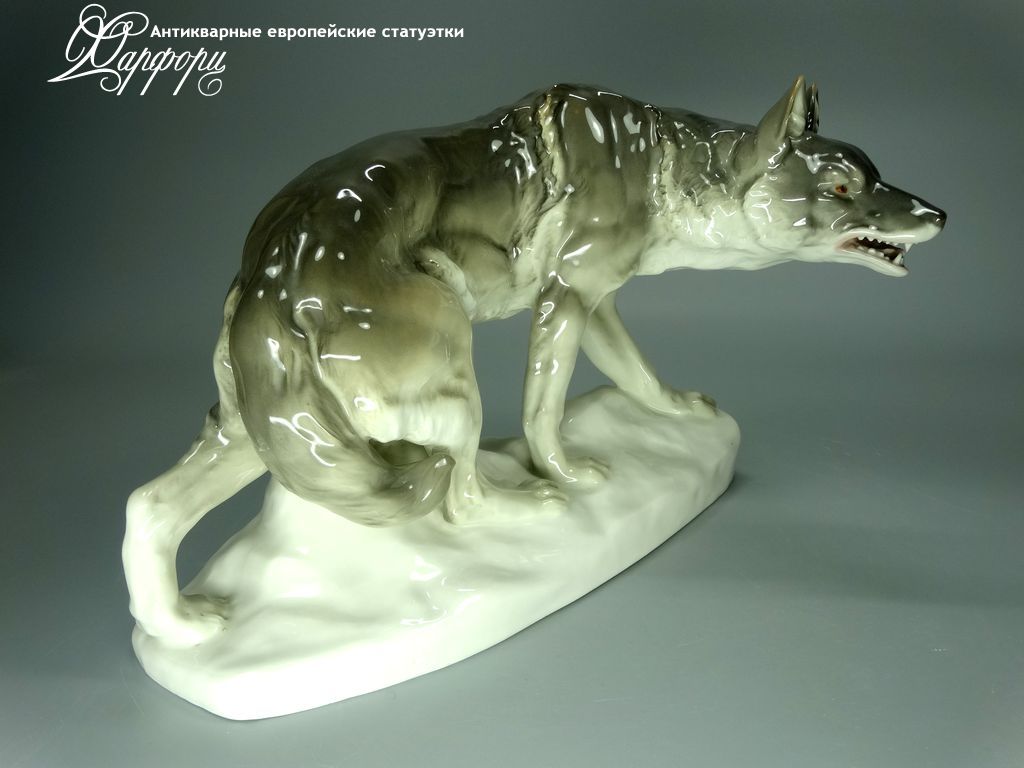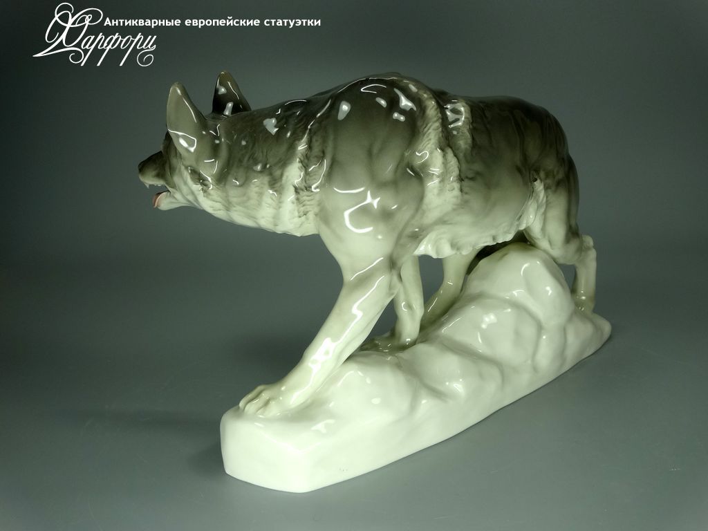 Фарфоровая статуэтка Rörstrand Волк Оригинальная фарфоровая статуэтка мануфактуры Rörstrand (ШВЕЦИЯ 1920-30г)