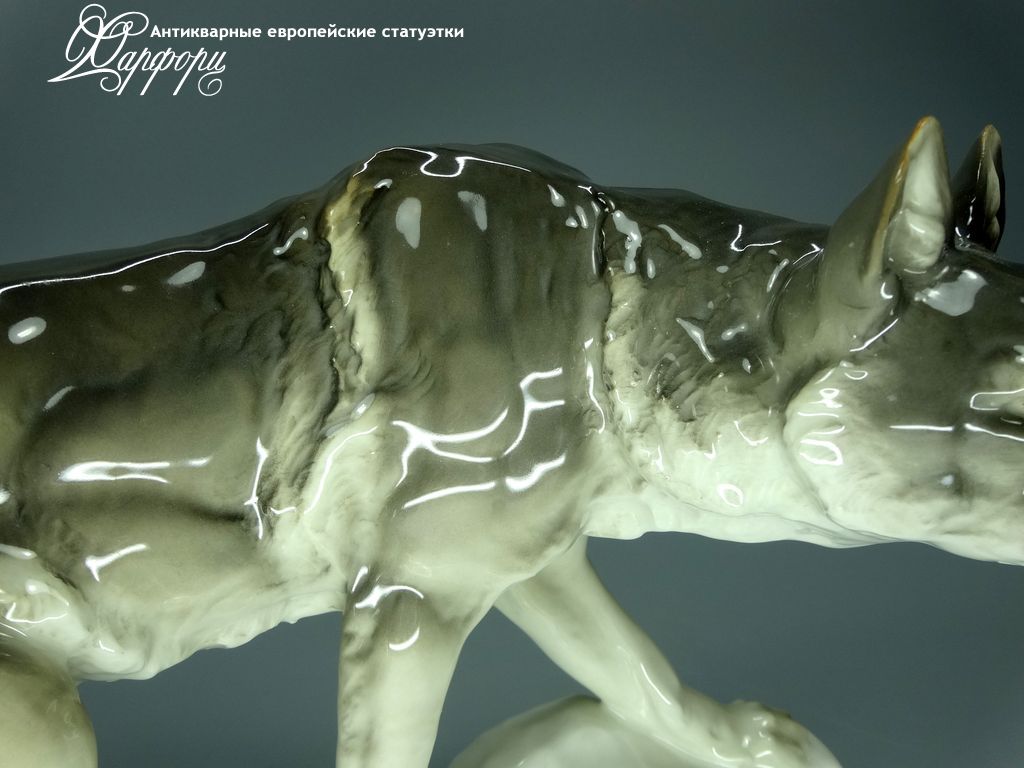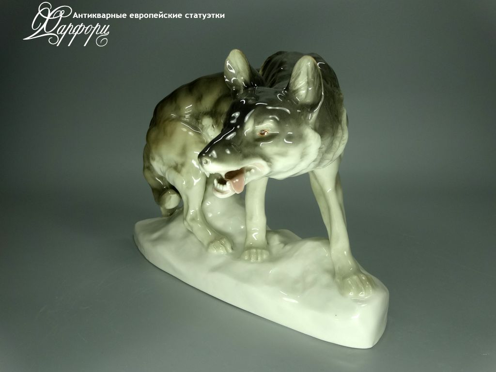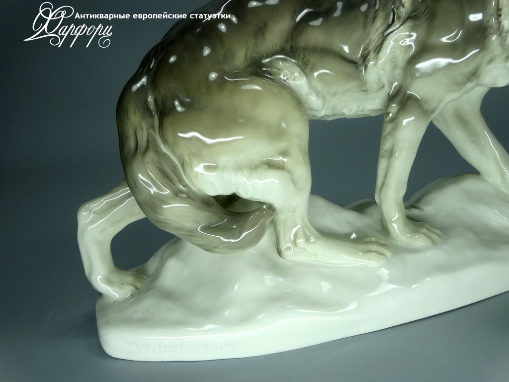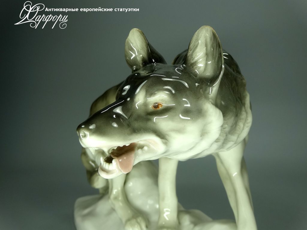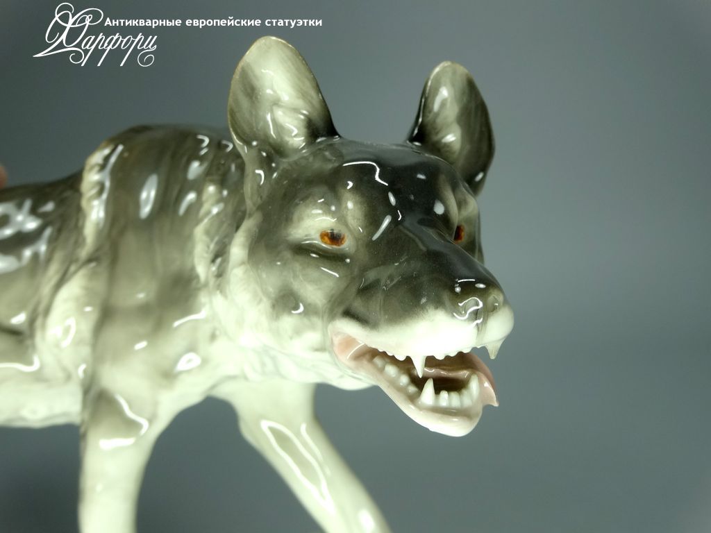 Фарфоровая статуэтка Rörstrand Волк Оригинальная фарфоровая статуэтка мануфактуры Rörstrand (ШВЕЦИЯ 1920-30г)