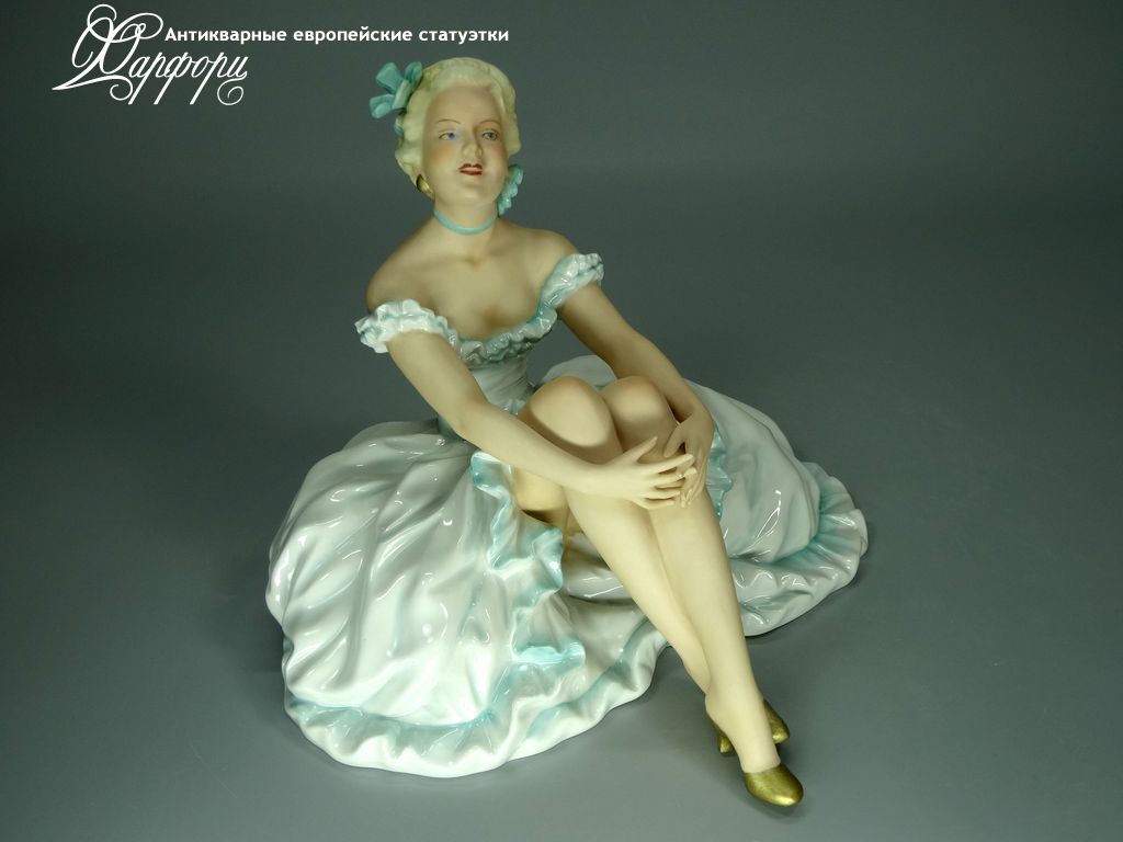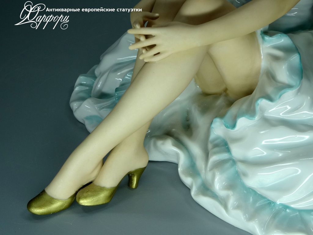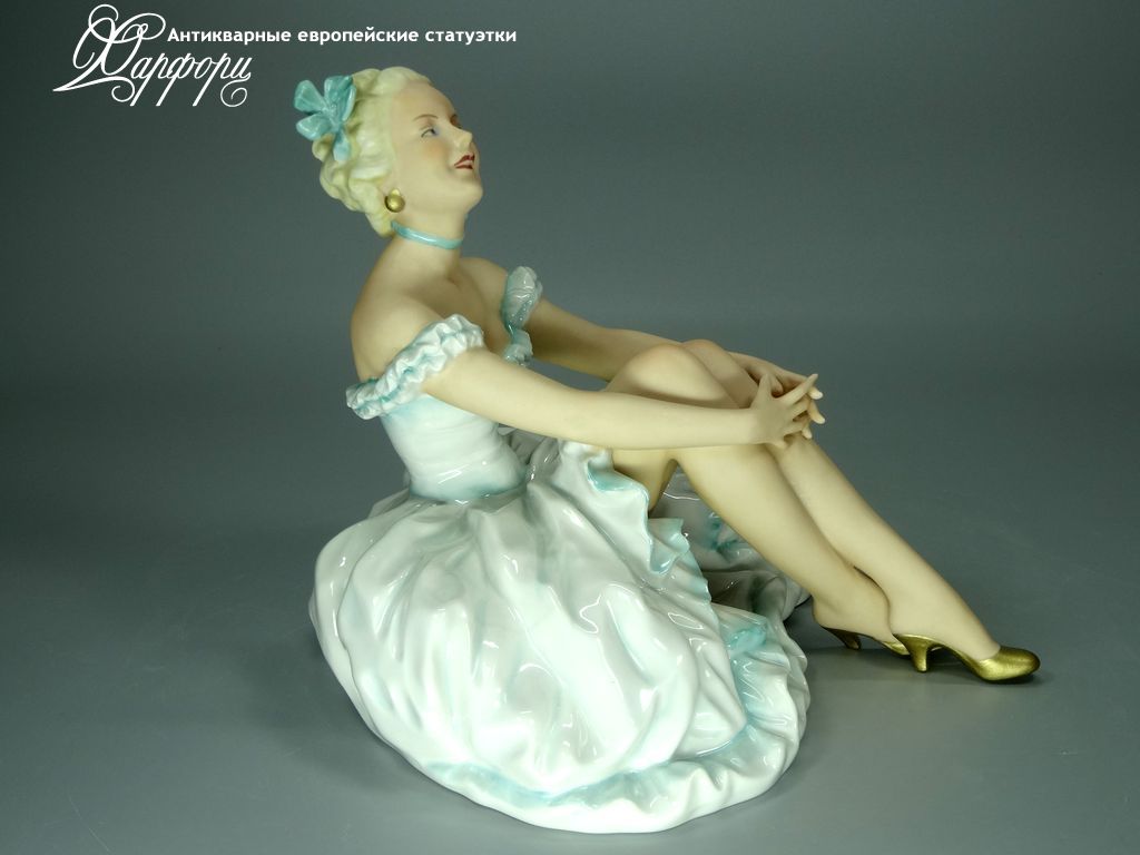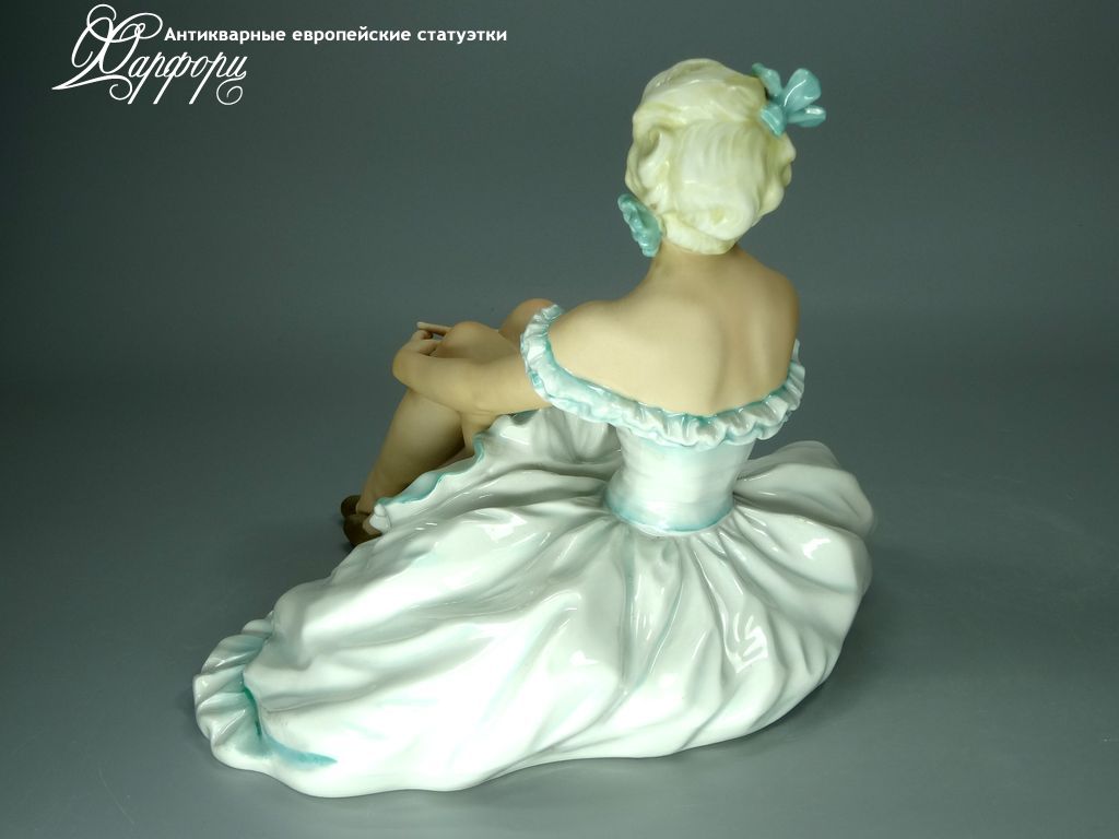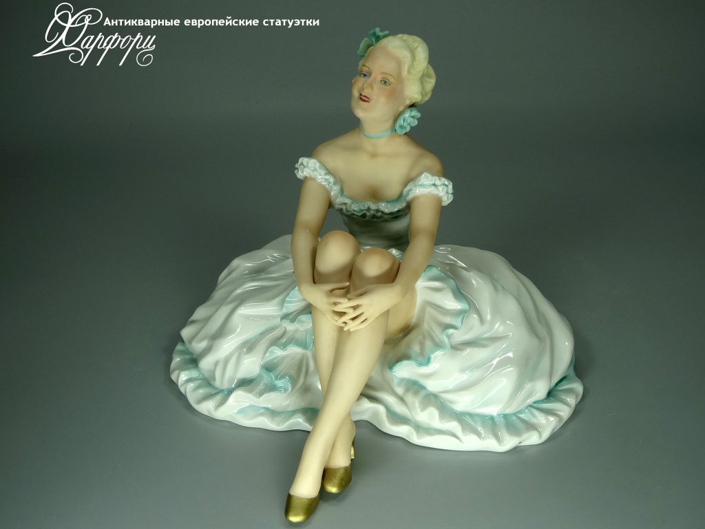 Фарфоровая статуэтка Unterweissbach Отдыхающая балерина Оригинальная фарфоровая статуэтка мануфактуры Unterweissbach (ГЕРМАНИЯ, 1940-50г).