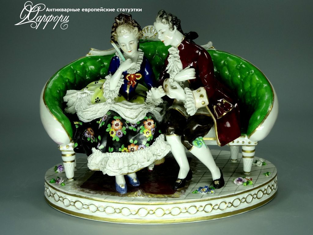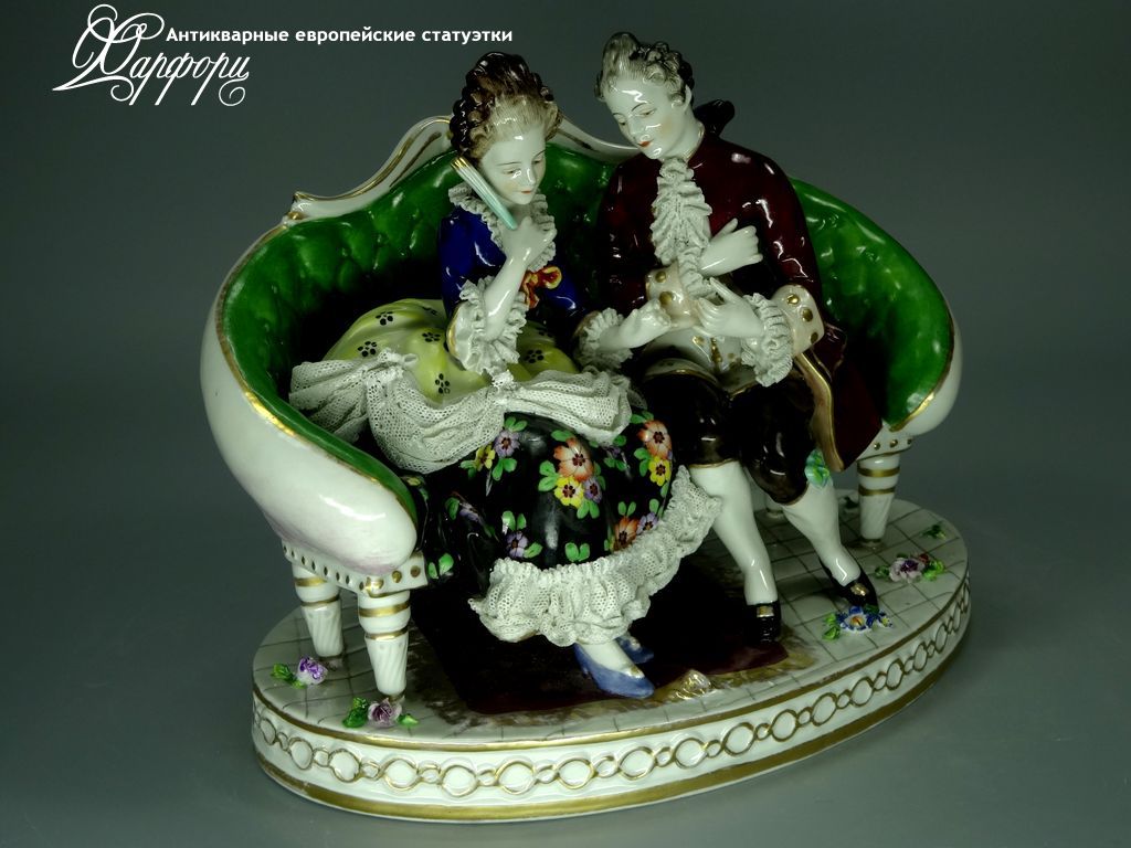 Фарфоровая статуэтка Volkstedt Влюбленные Оригинальная фарфоровая статуэтка мануфактуры Volkstedt (ГЕРМАНИЯ, 1880-1900г).