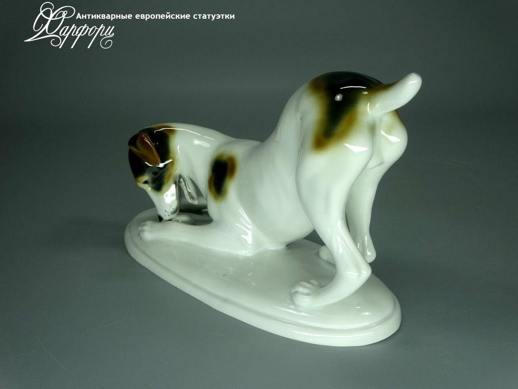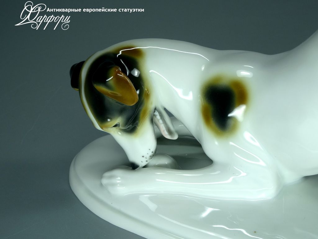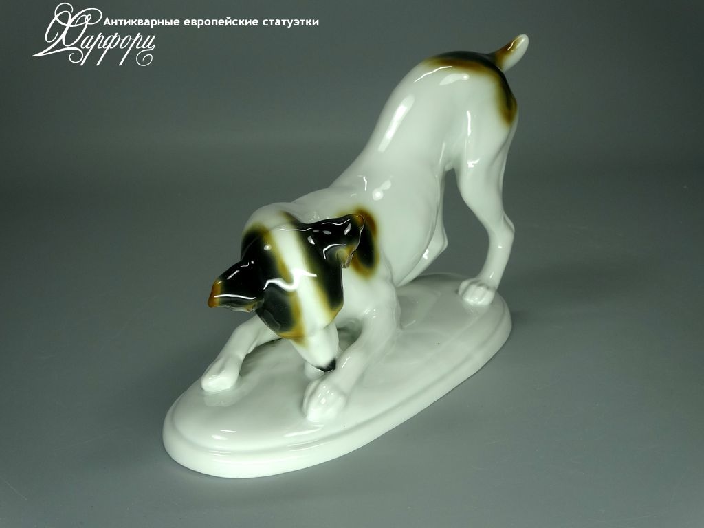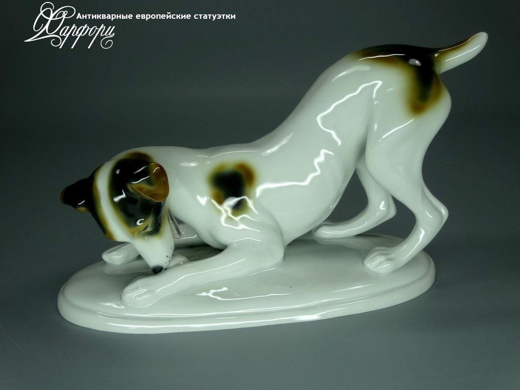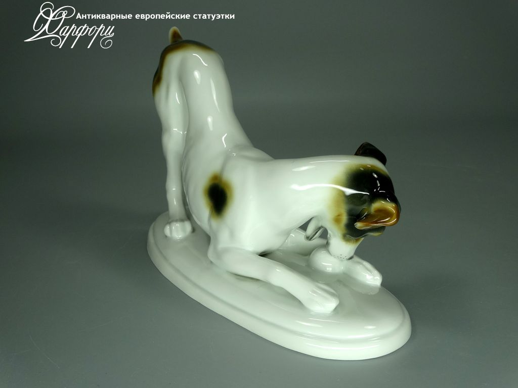 Фарфоровая статуэтка Volkstedt Фокстерьер Оригинальная фарфоровая статуэтка мануфактуры Volkstedt (ГЕРМАНИЯ, до 1880г).