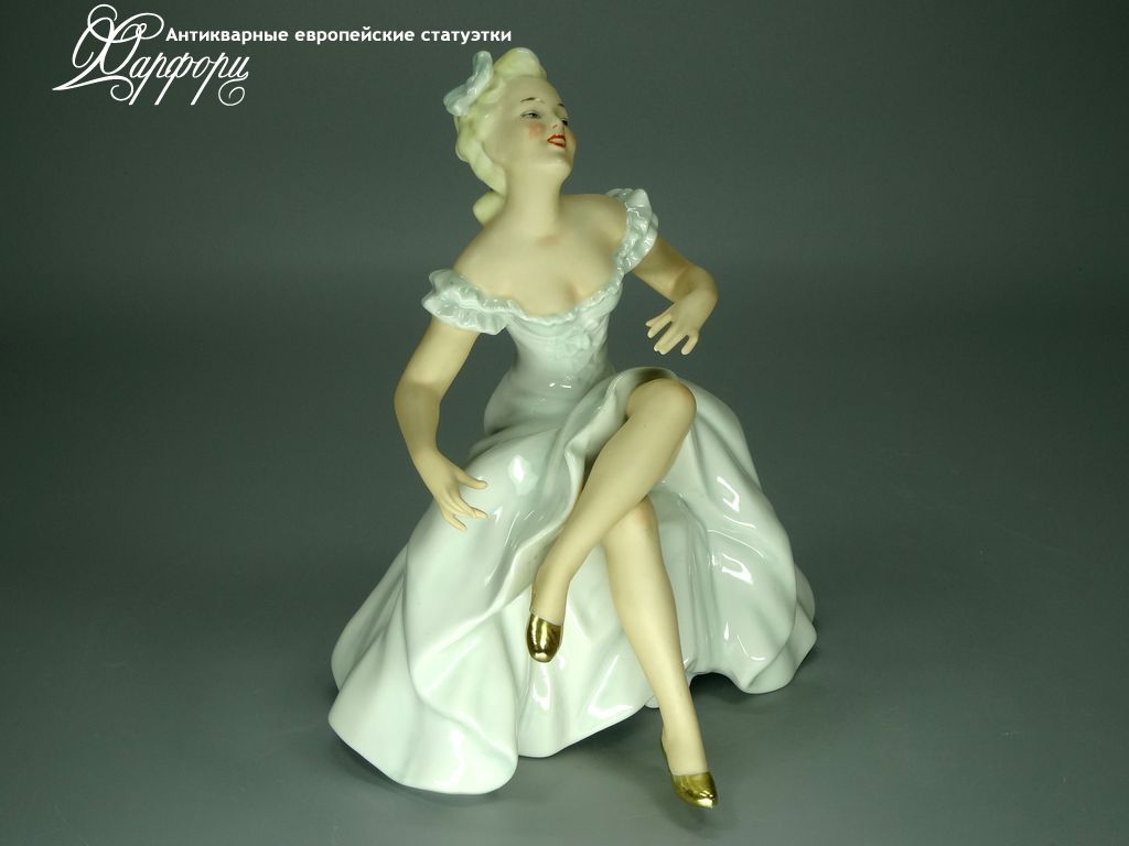 Фарфоровая статуэтка Wallendorf Балерина на пуфе Оригинальная фарфоровая статуэтка мануфактуры Wallendorf (ГЕРМАНИЯ, 1960-70г).