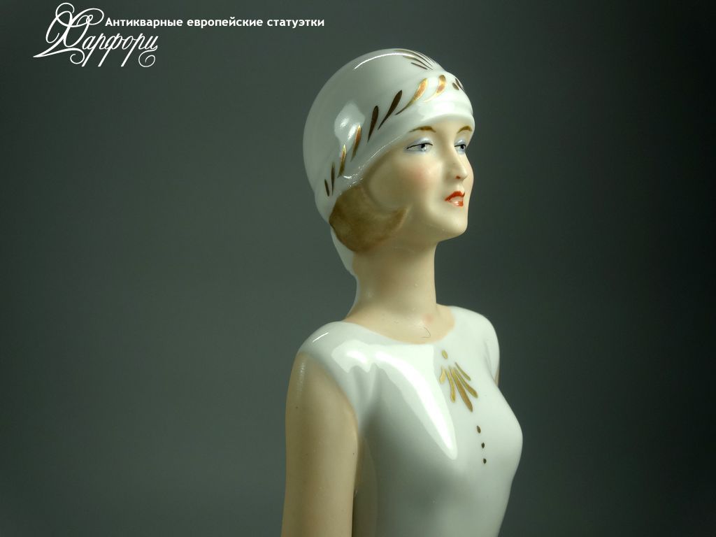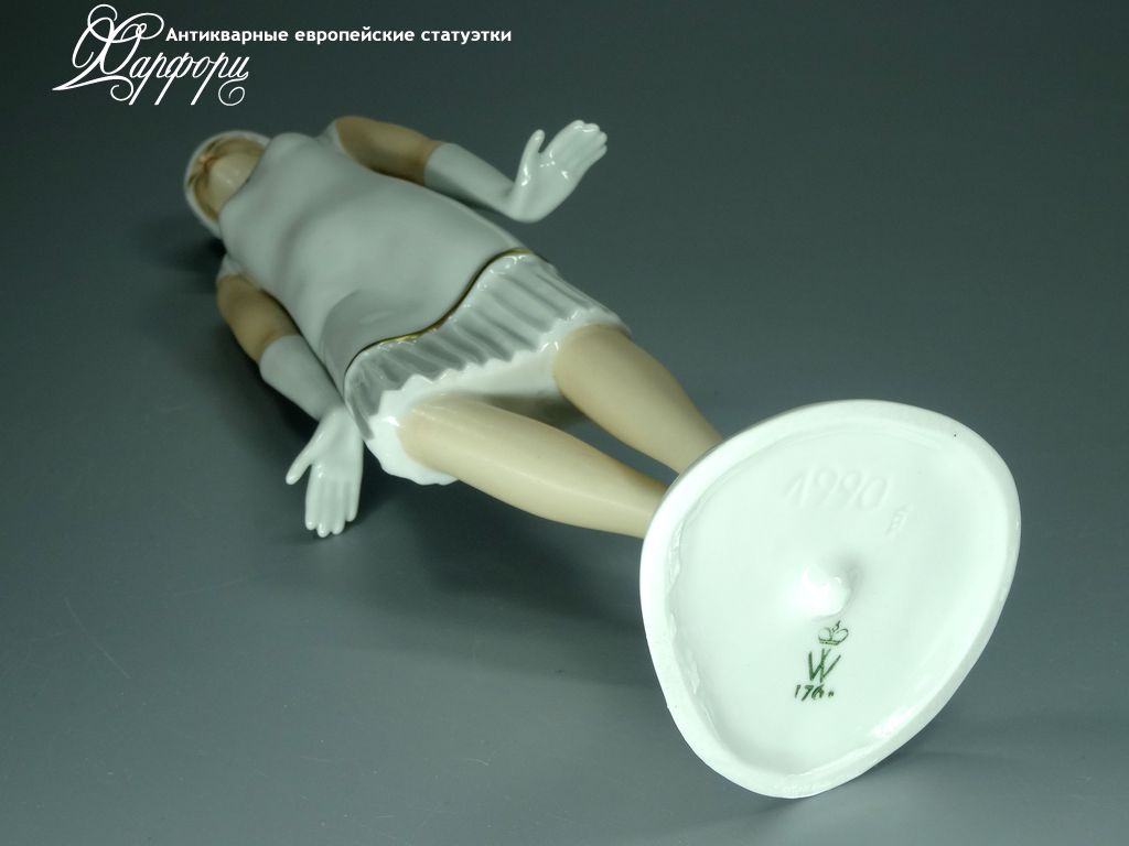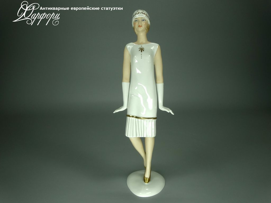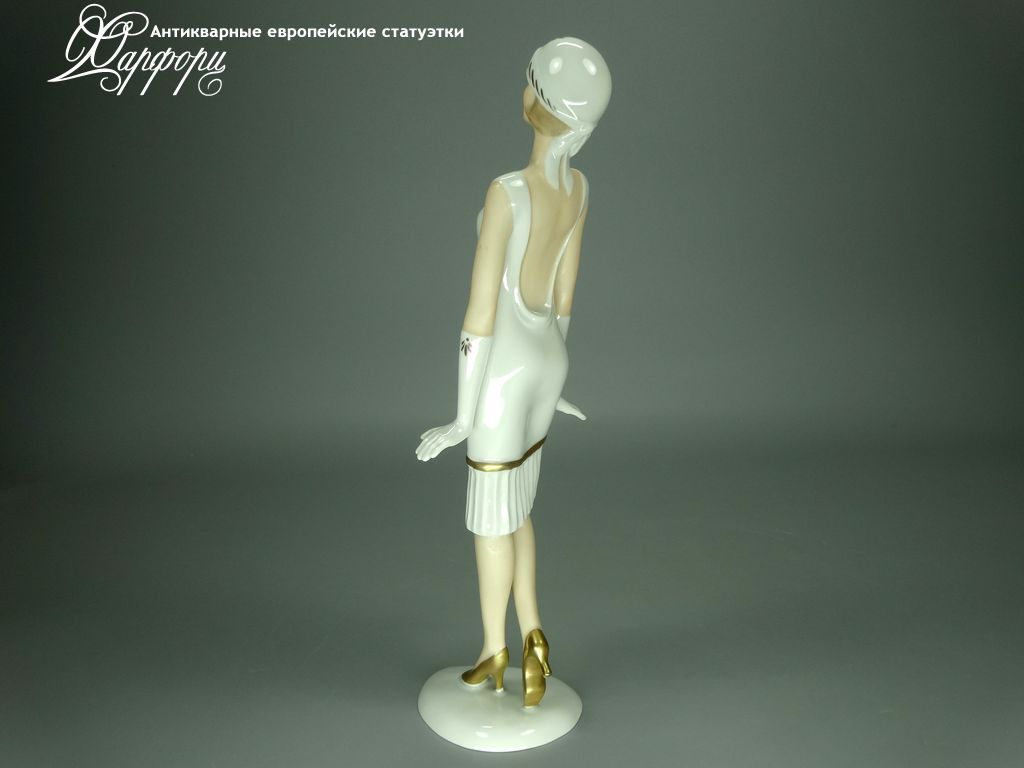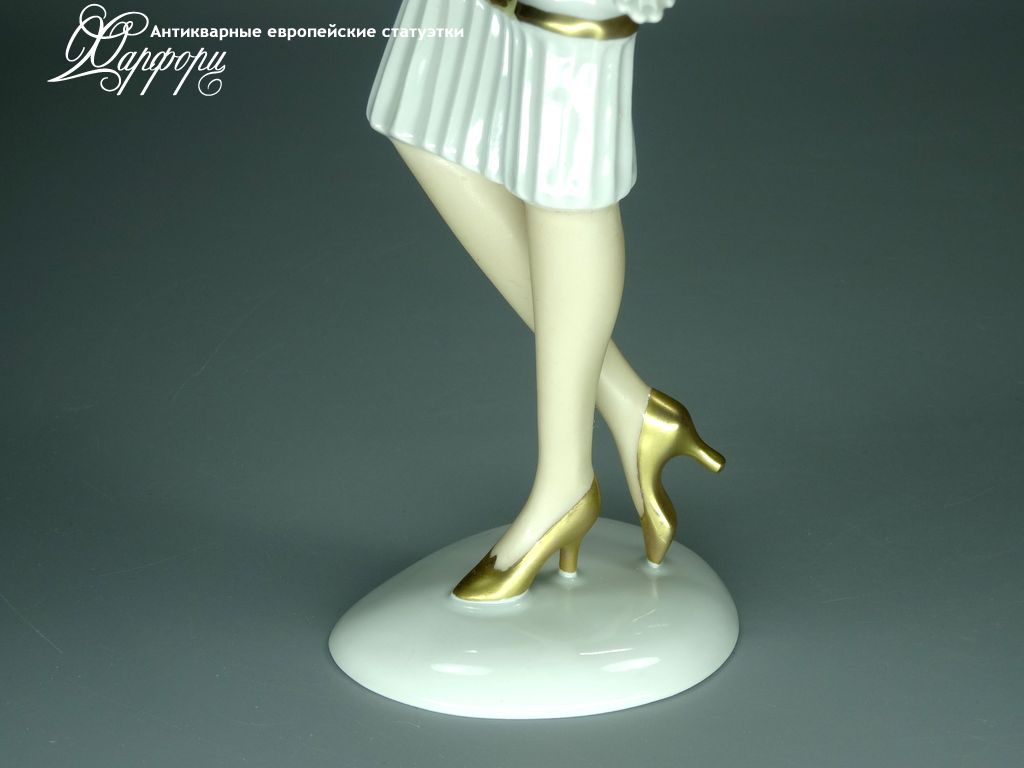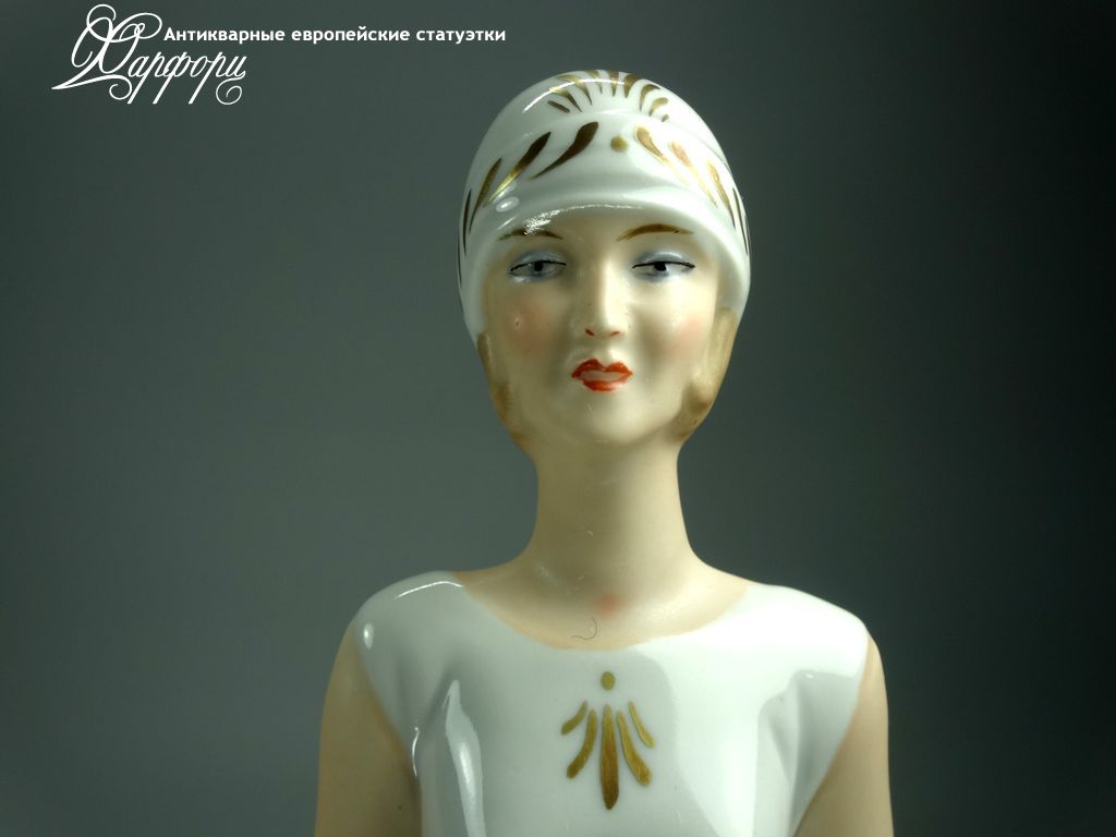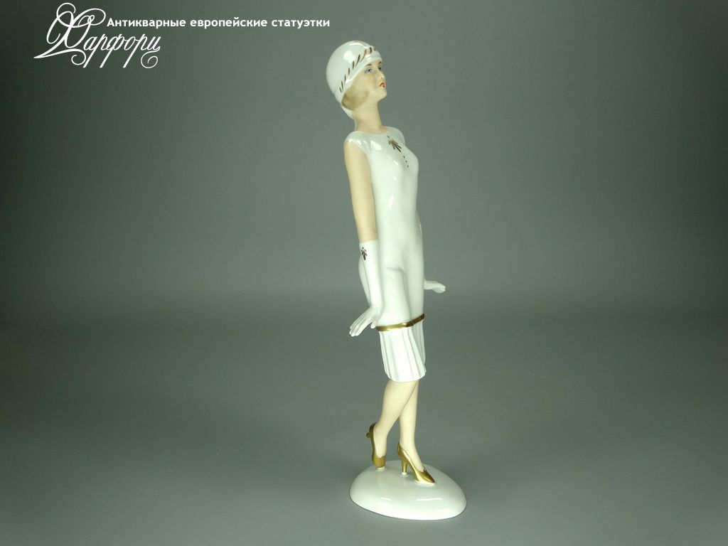 Фарфоровая статуэтка Wallendorf Девушка Ар-Деко Оригинальная фарфоровая статуэтка мануфактуры Wallendorf (ГЕРМАНИЯ, 1960-70г).