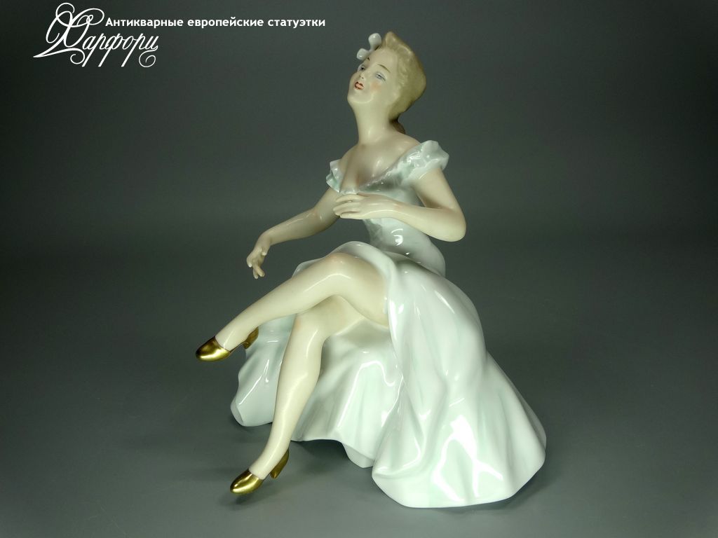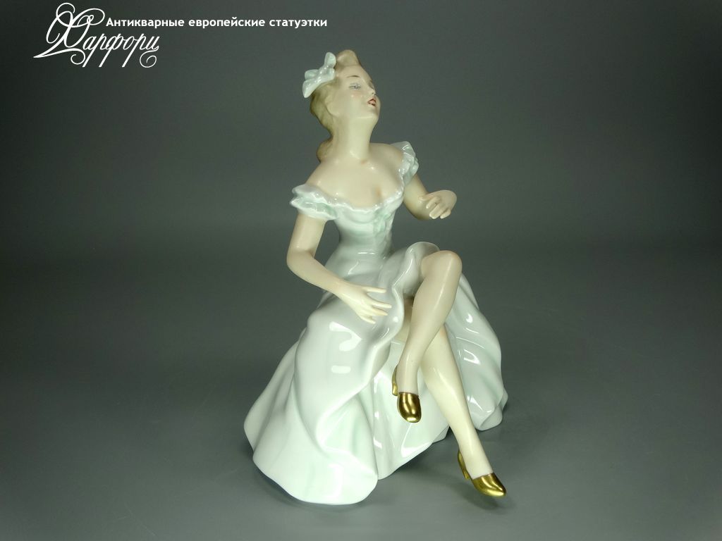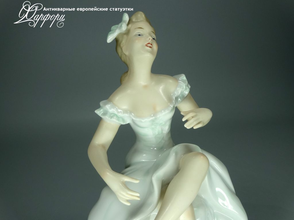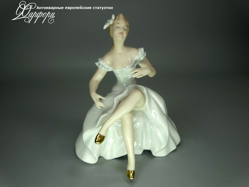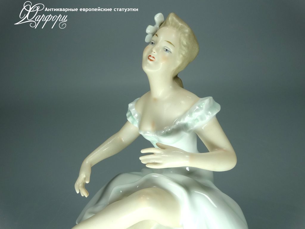 Фарфоровая статуэтка Wallendorf Балерина на пуфе Оригинальная фарфоровая статуэтка мануфактуры Wallendorf (ГЕРМАНИЯ, 1960-70г).