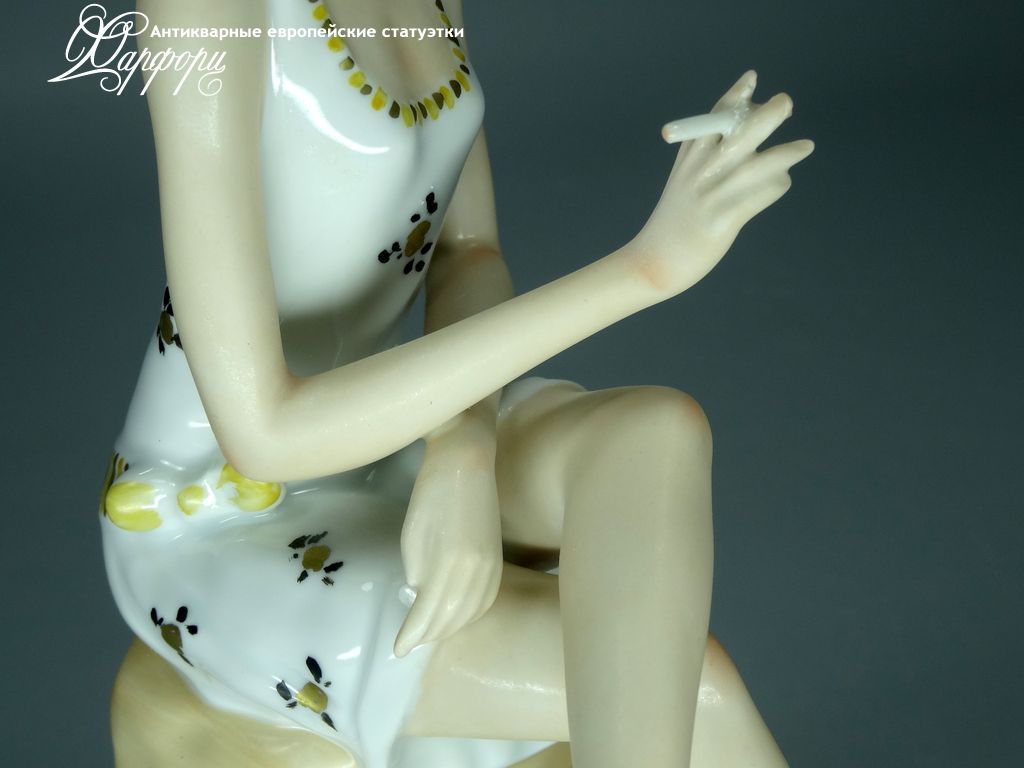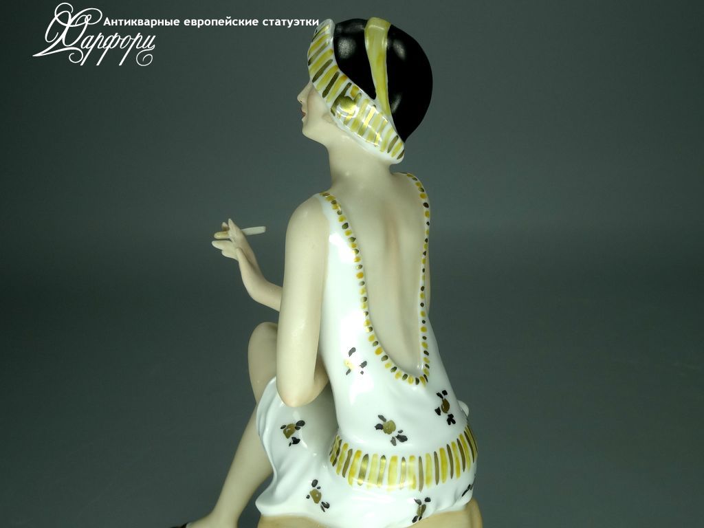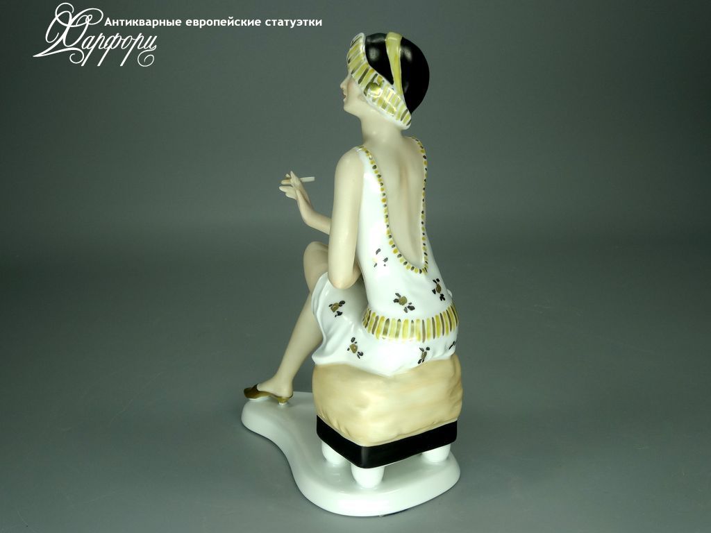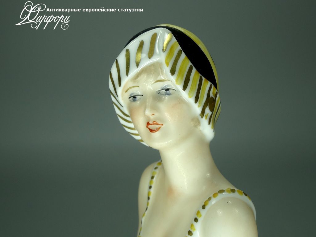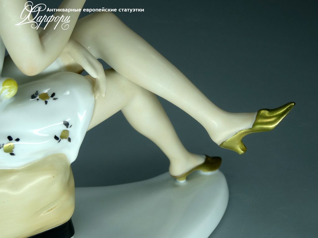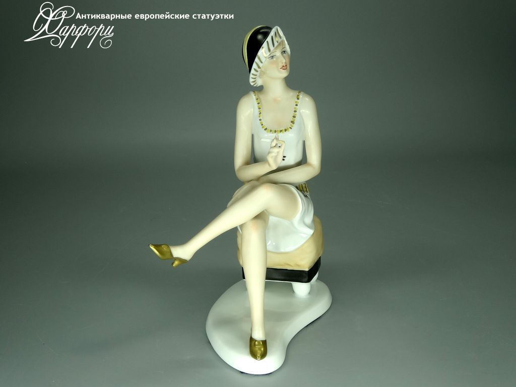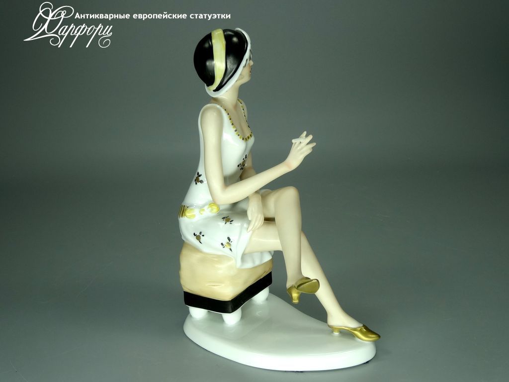 Фарфоровая статуэтка Wallendorf Девушка Ар-Деко Оригинальная фарфоровая статуэтка мануфактуры Wallendorf (ГЕРМАНИЯ, 1960-70г).